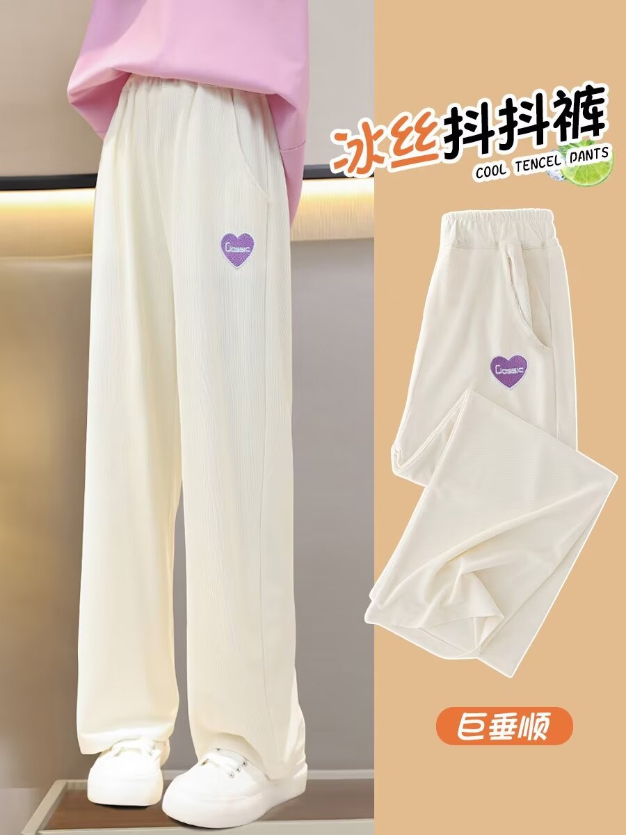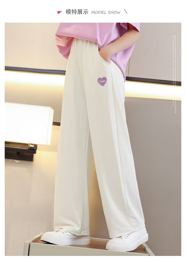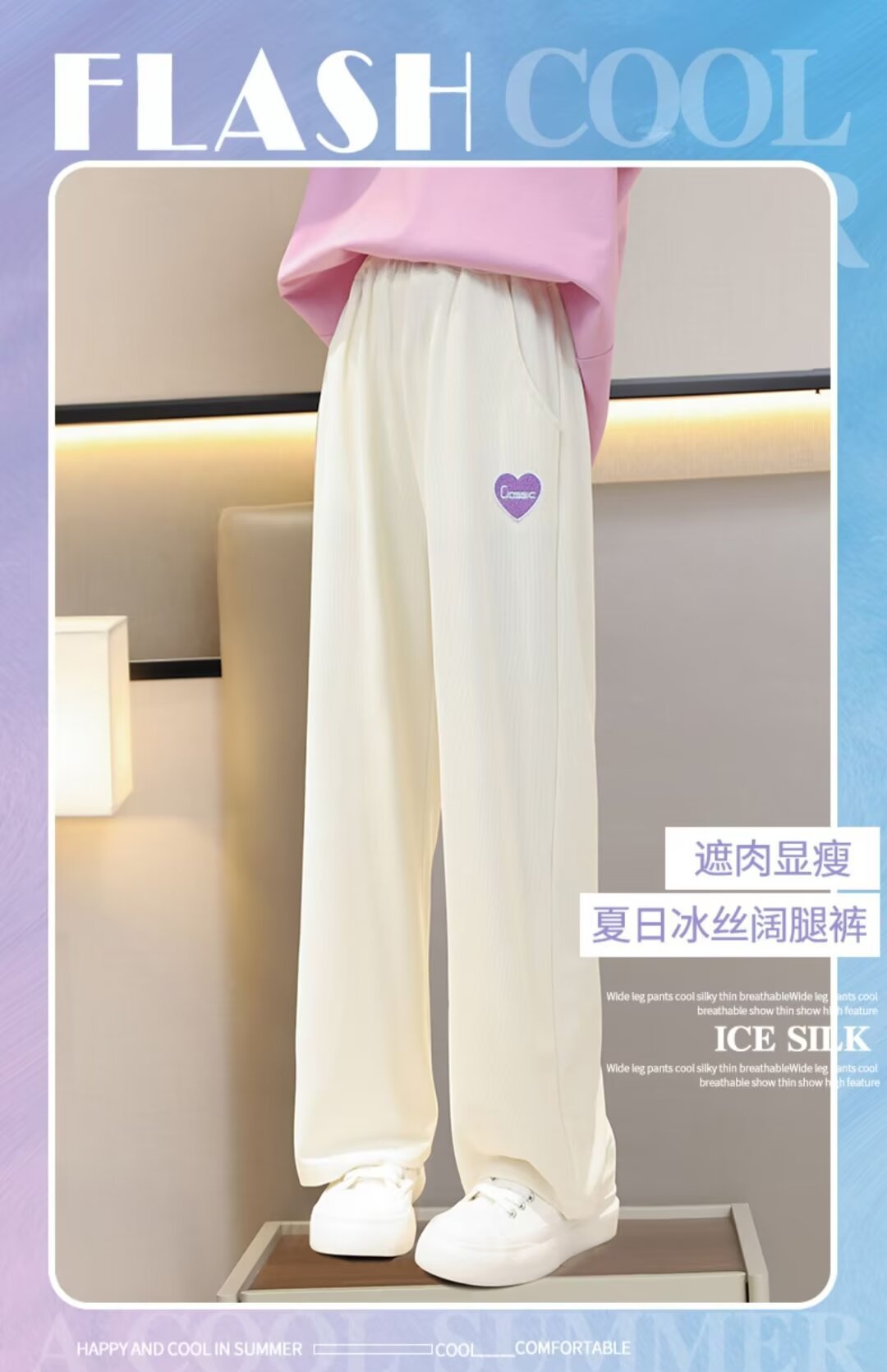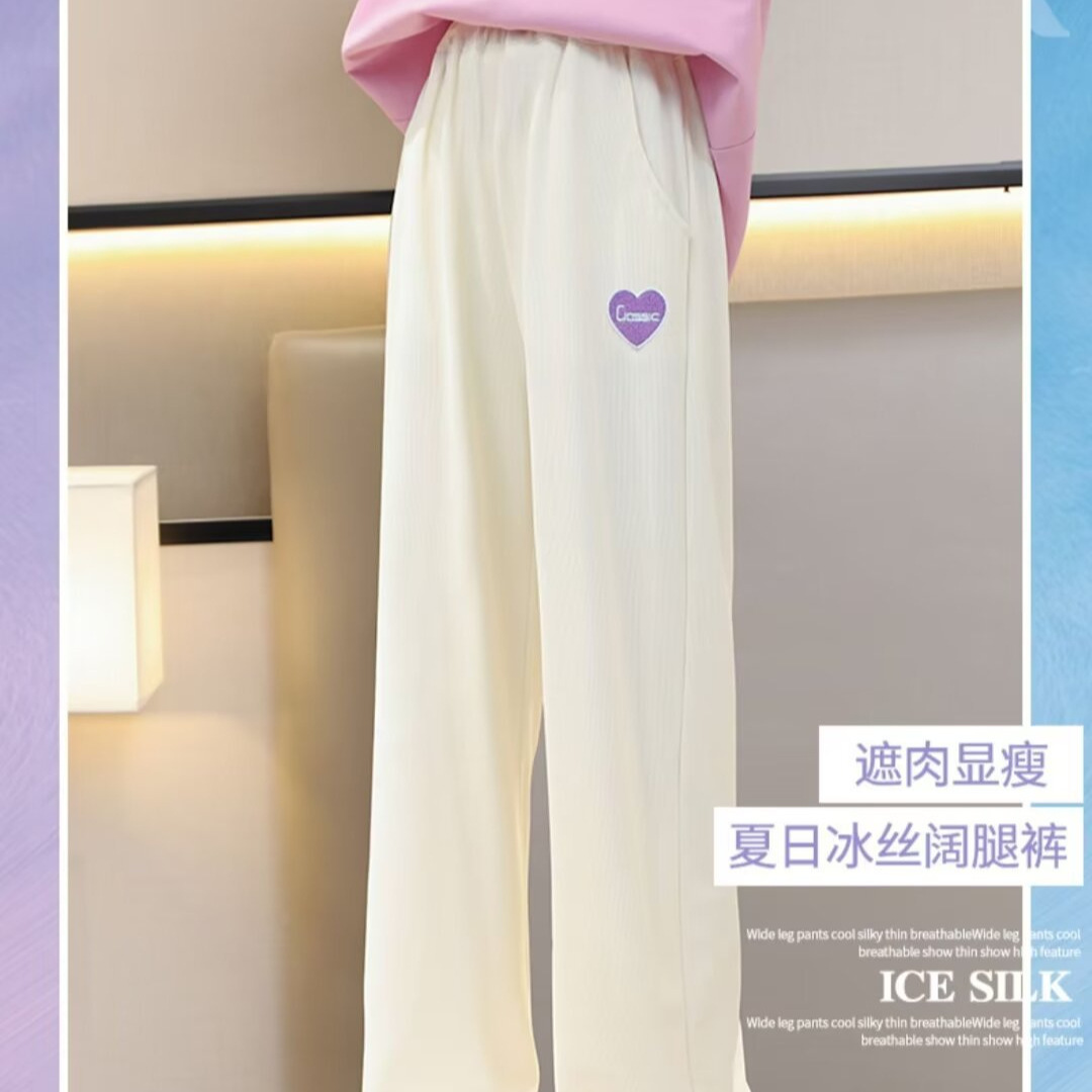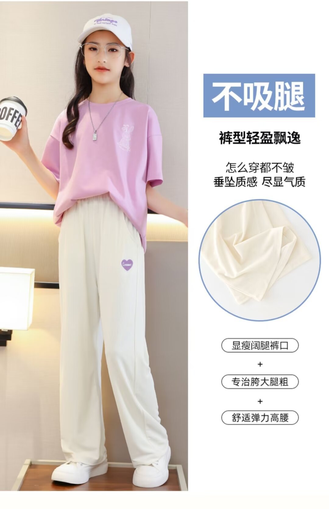 女童阔腿裤夏季薄款儿童冰丝裤子大童夏装运动裤女孩夏天长裤套装