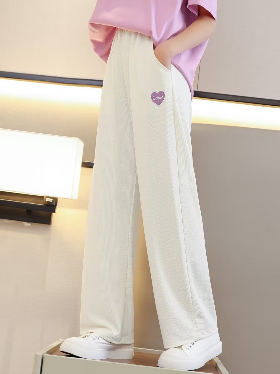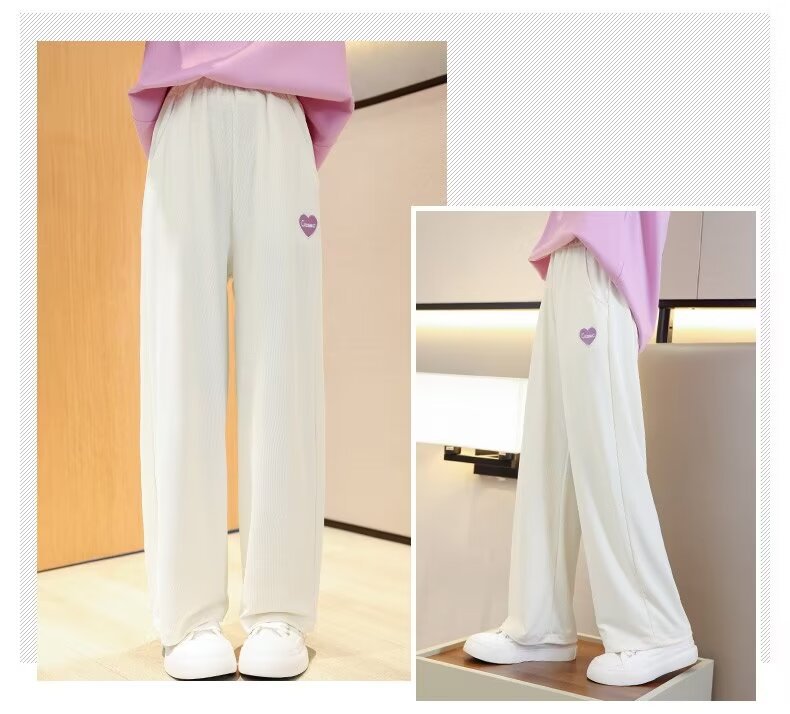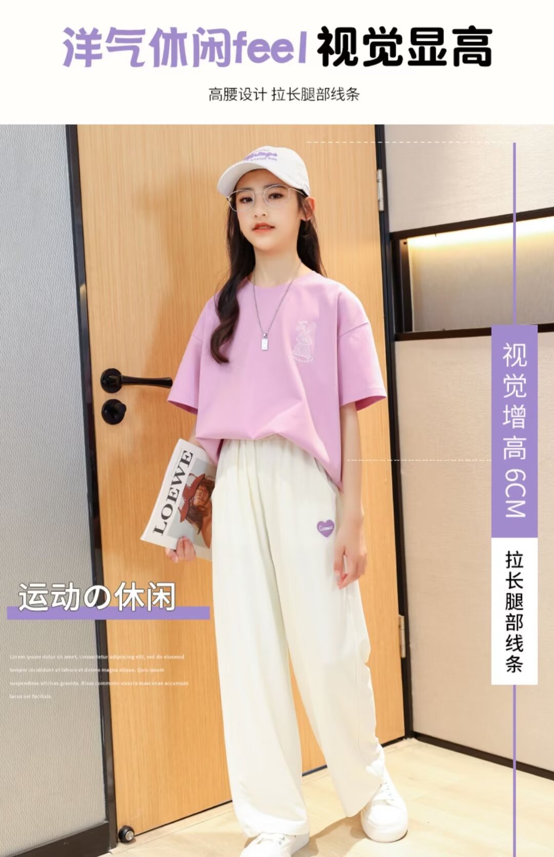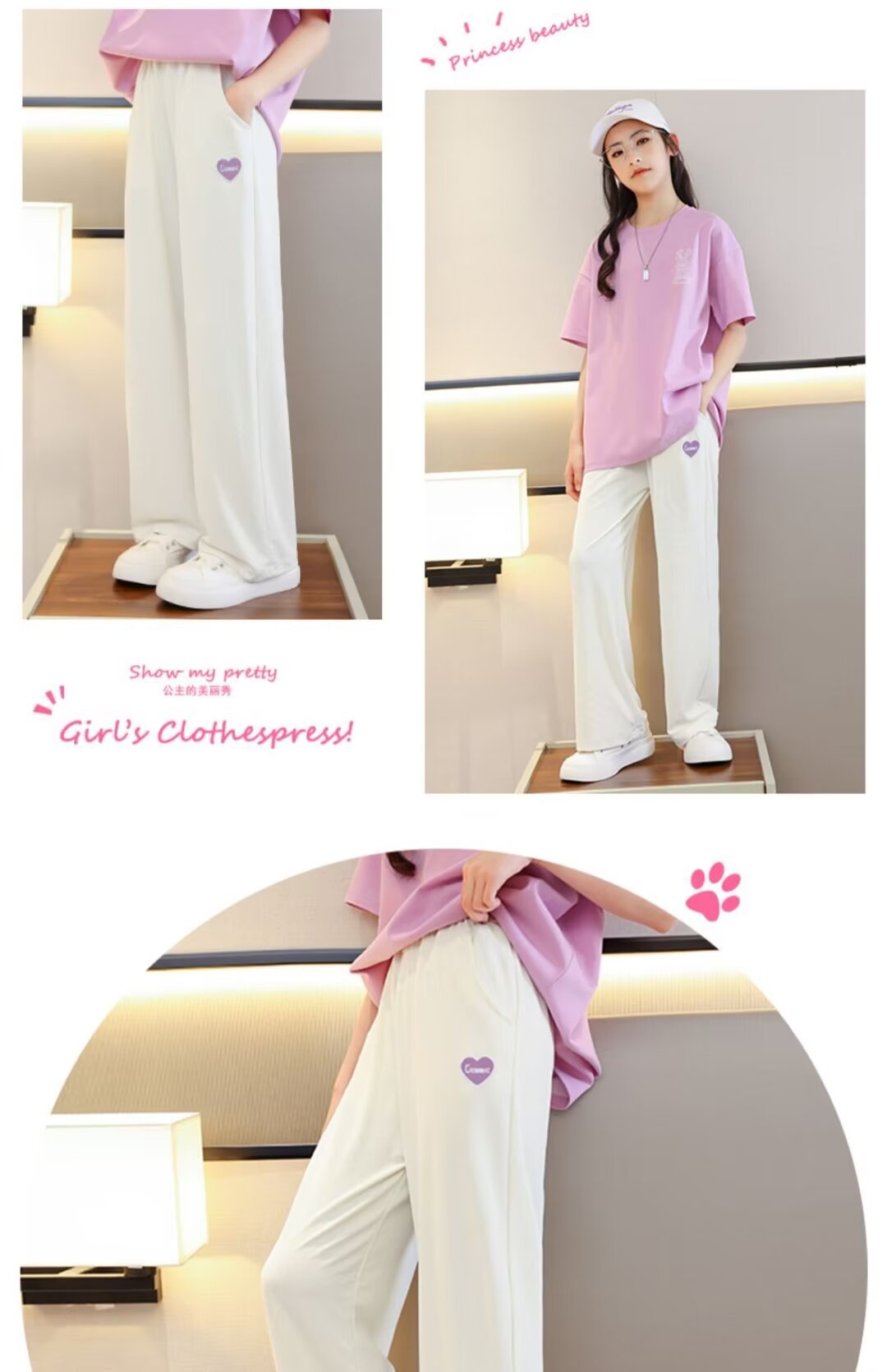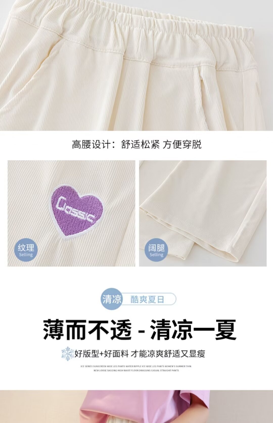 女童阔腿裤夏季薄款儿童冰丝裤子大童夏装运动裤女孩夏天长裤套装