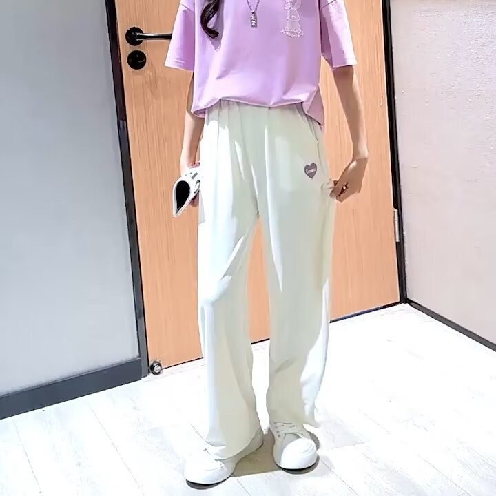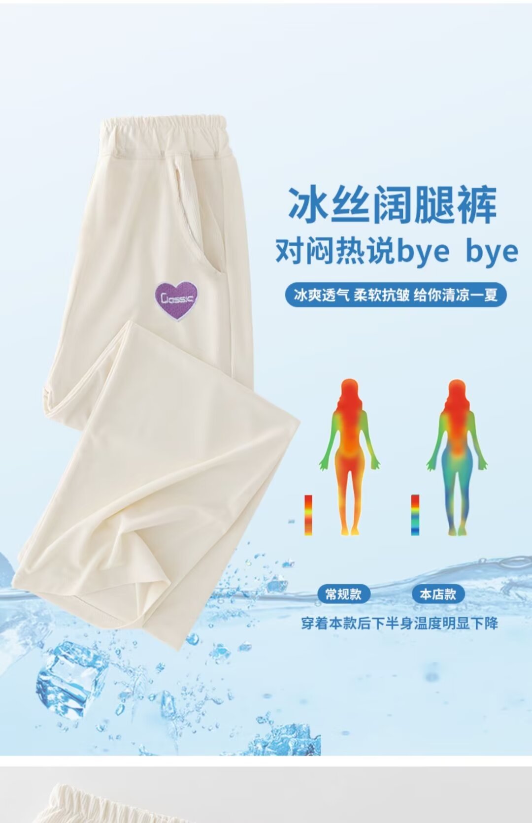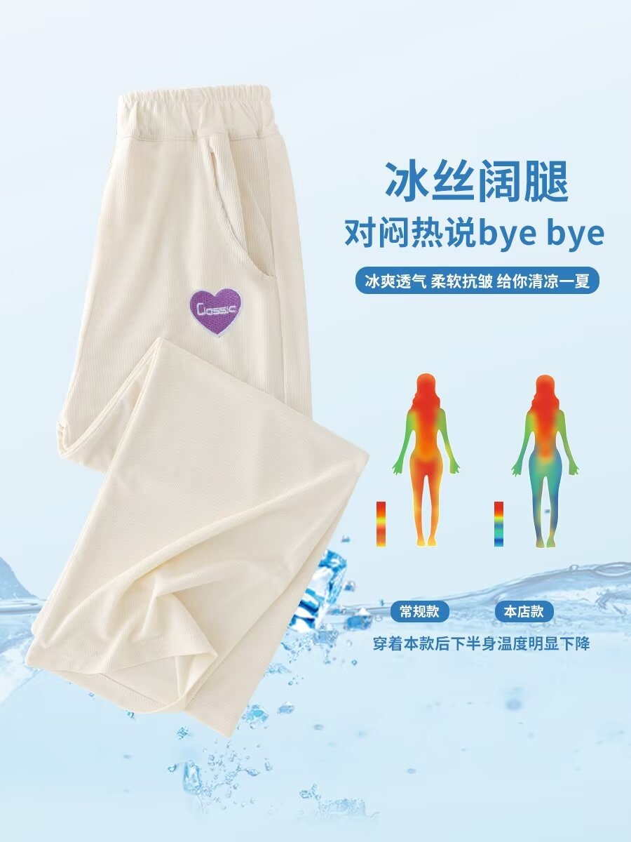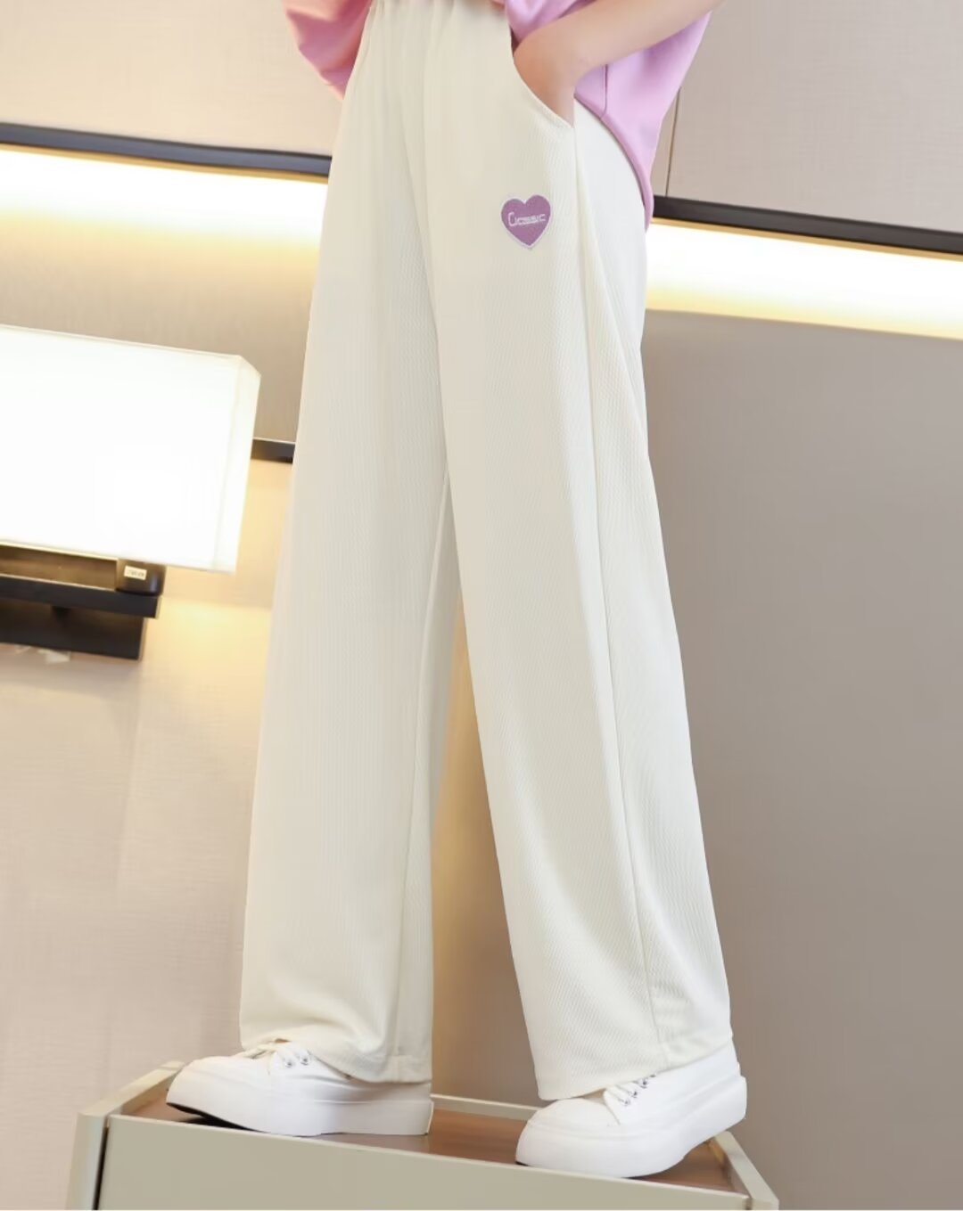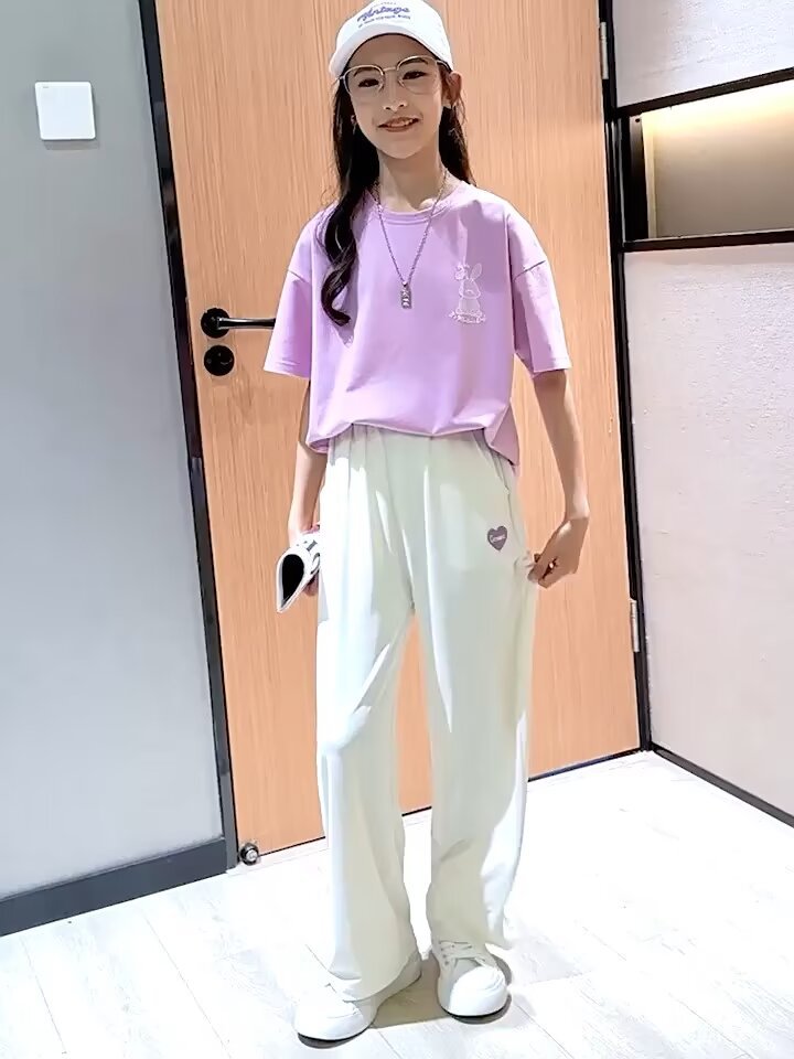 女童阔腿裤夏季薄款儿童冰丝裤子大童夏装运动裤女孩夏天长裤套装