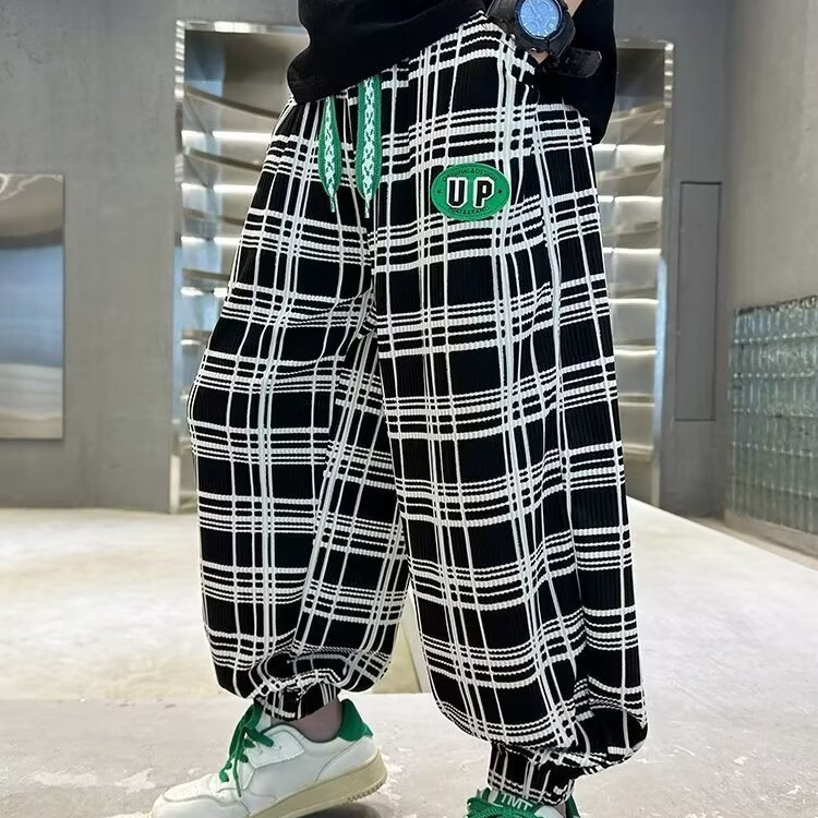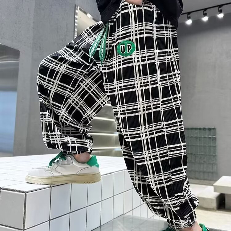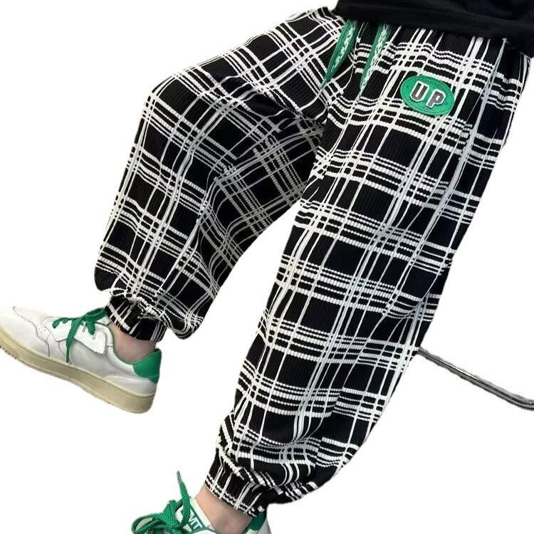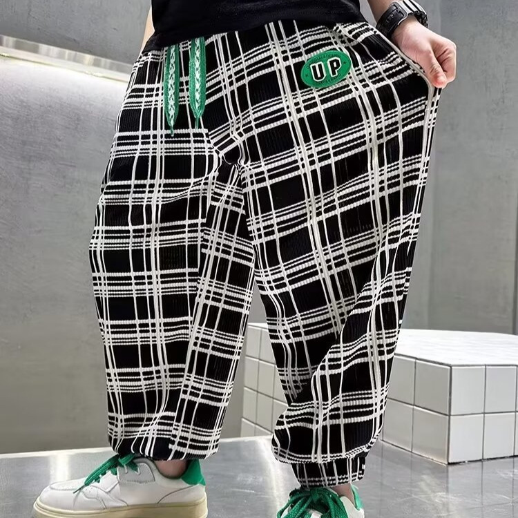 冰丝格子防蚊裤男童夏季薄款新款夏装休闲长裤子中大儿童男孩