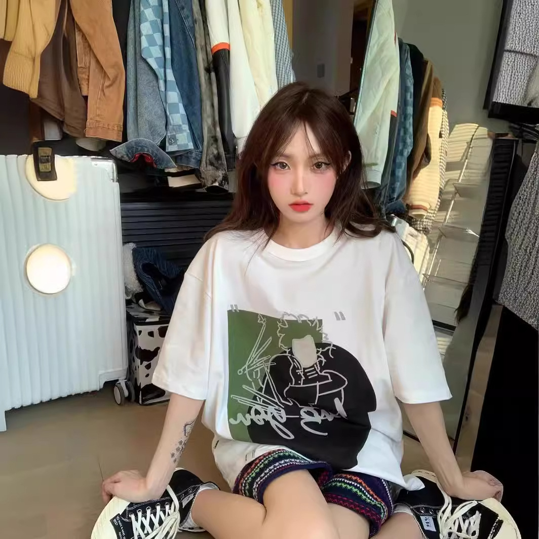 纯棉美式复古设计感印花短袖t恤女ins潮牌夏季宽松小众半袖上衣服