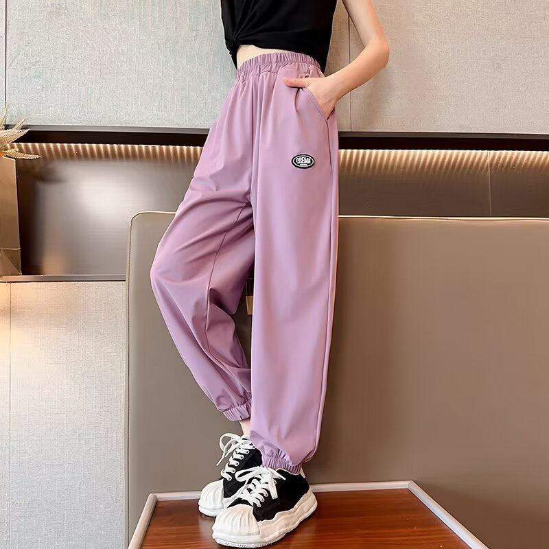 女童夏季裤子薄款夏天儿童速干运动裤夏款宽松大女童冰丝防蚊裤黑