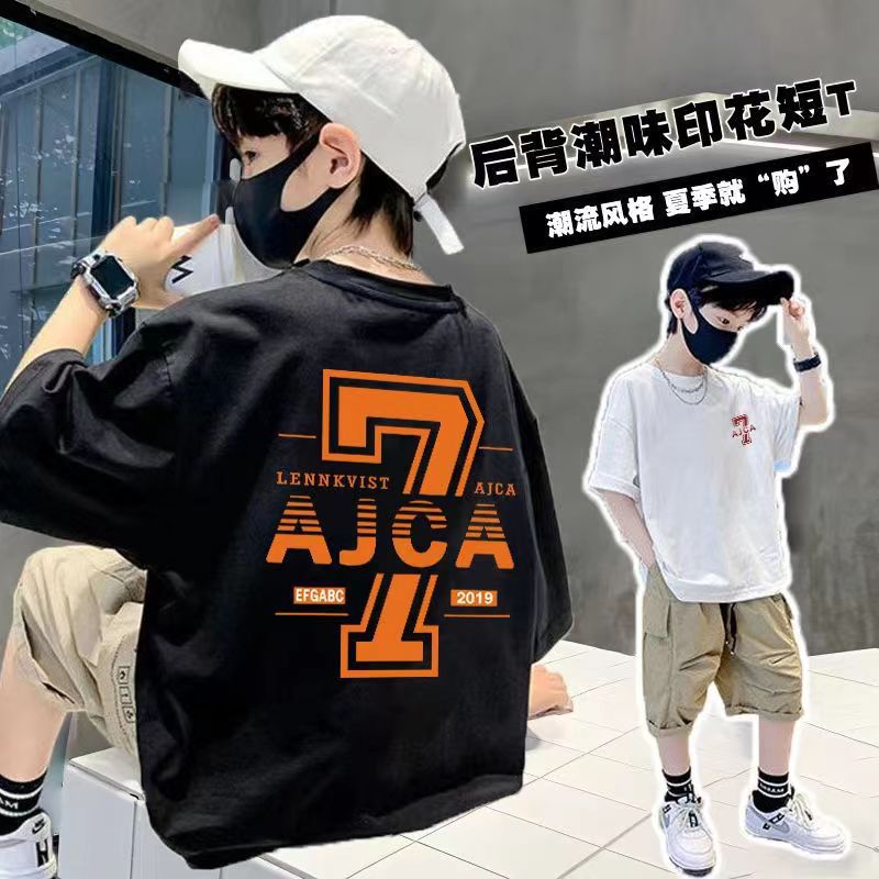 字母印花童装男童短袖t恤棉质INS夏季新款儿童宝宝半袖上衣中大童