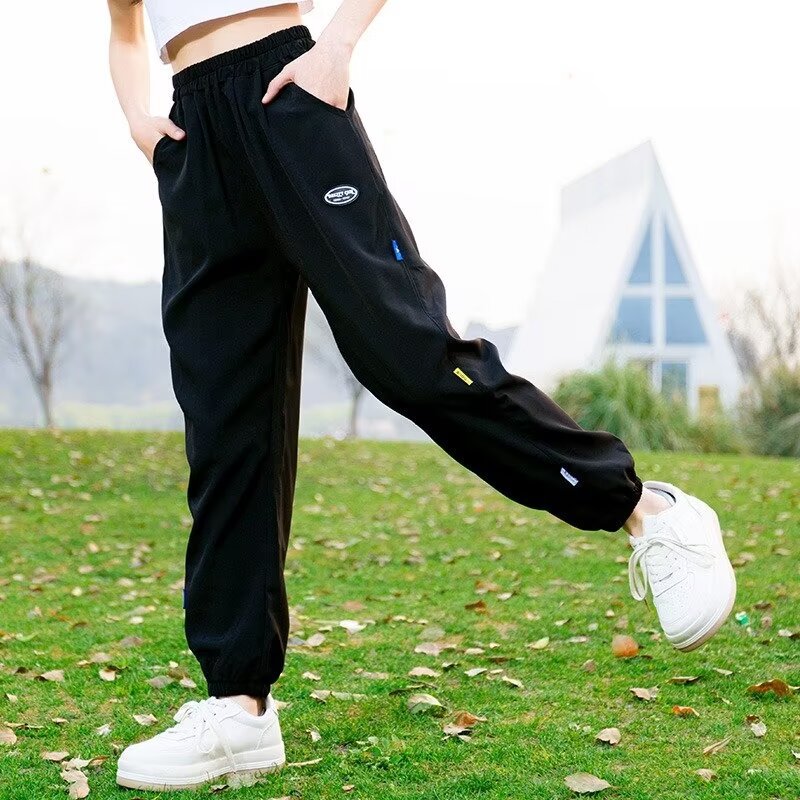 女童裤子夏季薄款儿童装13岁女孩长裤冰丝速干夏天黑色大童运动裤