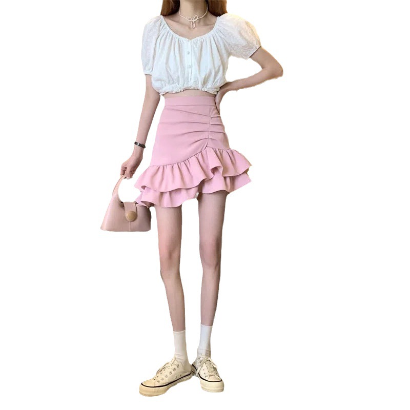 褶皱设计感甜美显瘦高腰半身裙女夏新款别致百搭女短款鱼尾裙