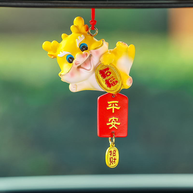 车载平安幸运龙车内吉祥物龙年车内挂饰吉祥龙车后视镜挂件新