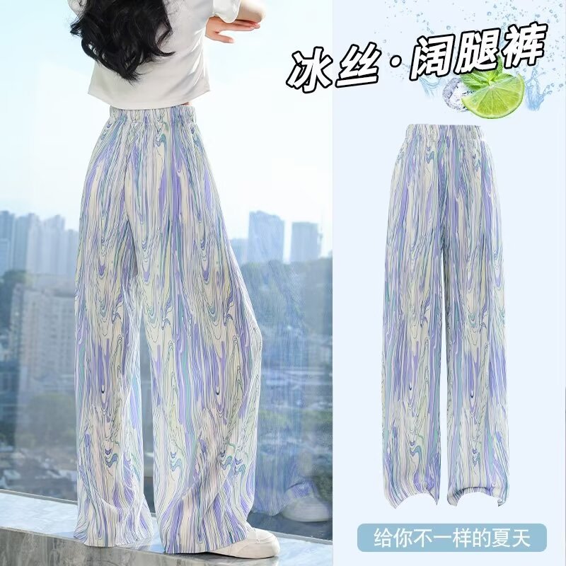 女童裤子夏装新款夏季扎染冰丝防蚊裤大童儿童休闲阔腿裤薄款