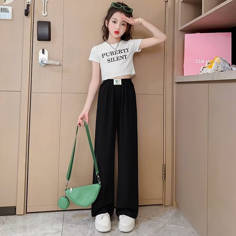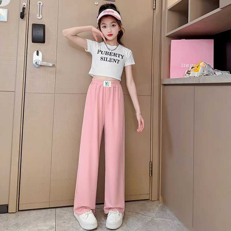 女童夏装冰丝阔腿裤新款中大童直筒女孩防蚊儿童裤子夏季长裤