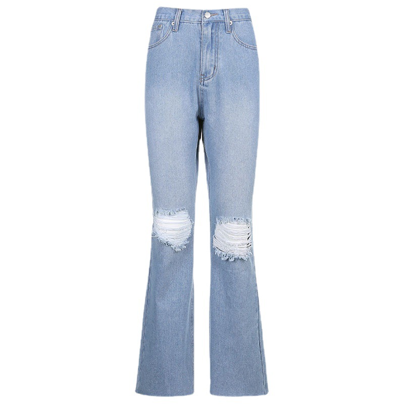 欧美跨境亚马逊ebay热销长款牛仔喇叭裤阔脚破洞牛仔裤女