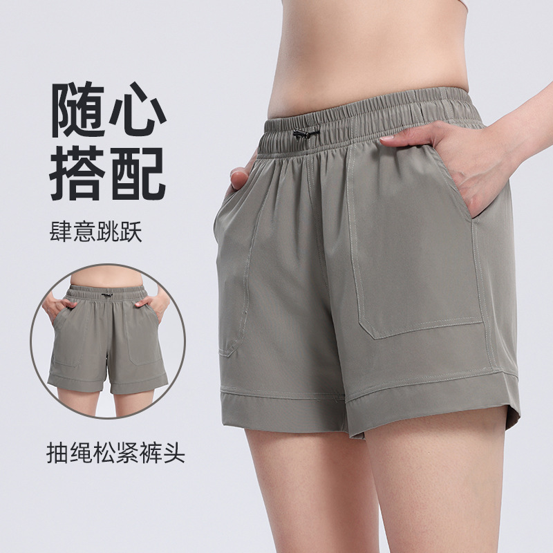 可洛衣新款瑜伽短裤女外休闲宽松松紧腰口袋速干夏季五分裤女