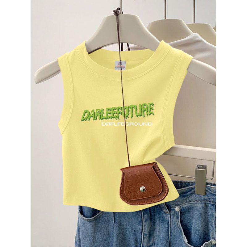 美式辣妹紧身无袖小背心吊带女夏季新款收腰显瘦黄色短款上衣ins