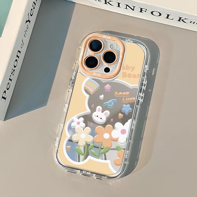 可爱小兔适用iPhone16promax手机壳镜面奶油14全包保护套13/15/11
