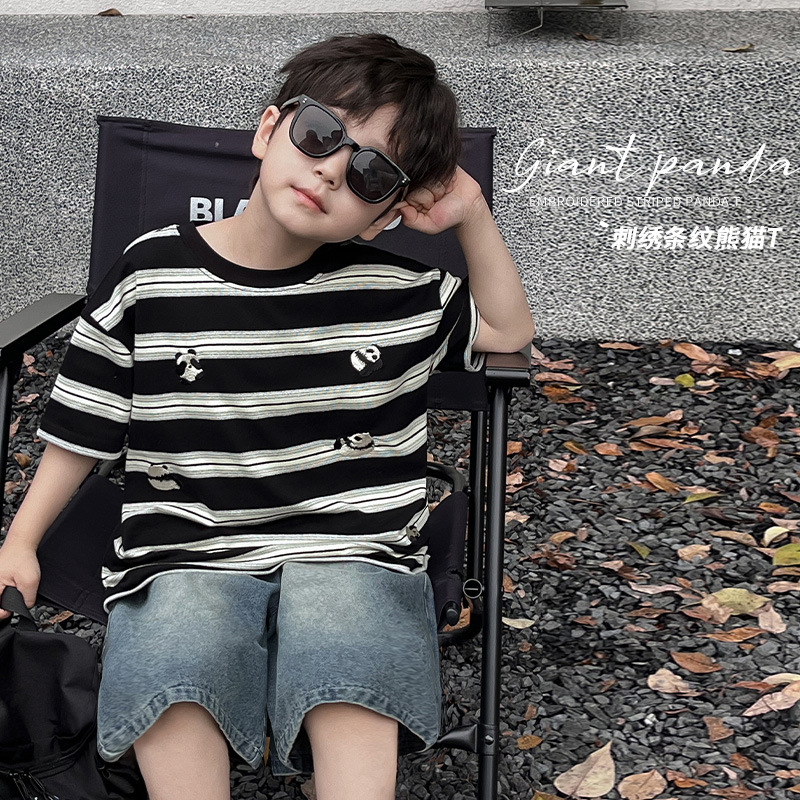 童酷湖州织里童装儿童夏装新品宝宝T恤可爱刺绣熊猫男童短袖
