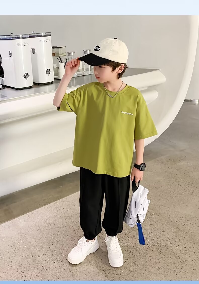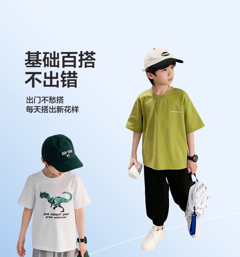 24夏季新款儿童短袖男女童T恤3-8岁宝宝圆领卡通短袖连帽衫