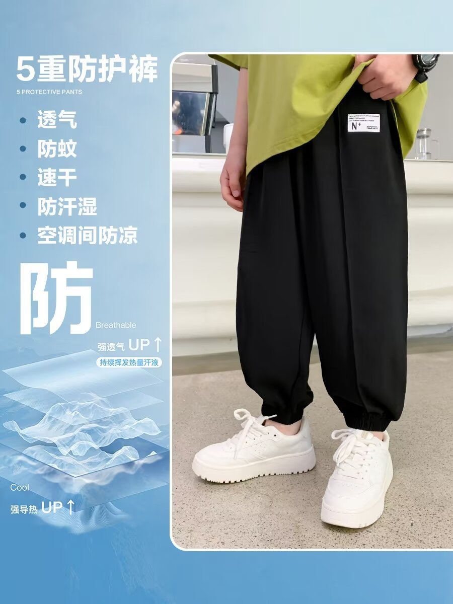 男童夏季薄款冰丝防蚊裤新款儿童空调裤中大童速干休闲裤透气