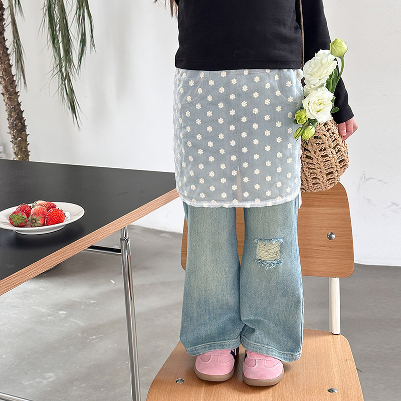 艾摩贝贝儿童时髦叠穿蕾丝屁帘女童一片式系带设计感百搭半身裙子