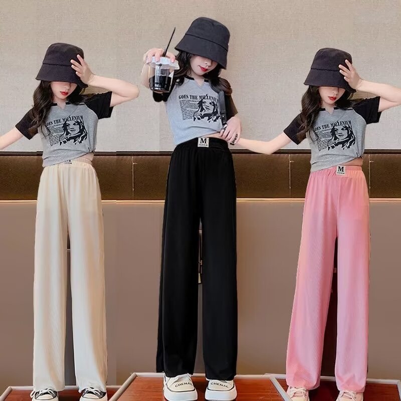 女童阔腿裤夏款运动休闲裤新款爆款冰丝裤子中大儿童直筒裤潮