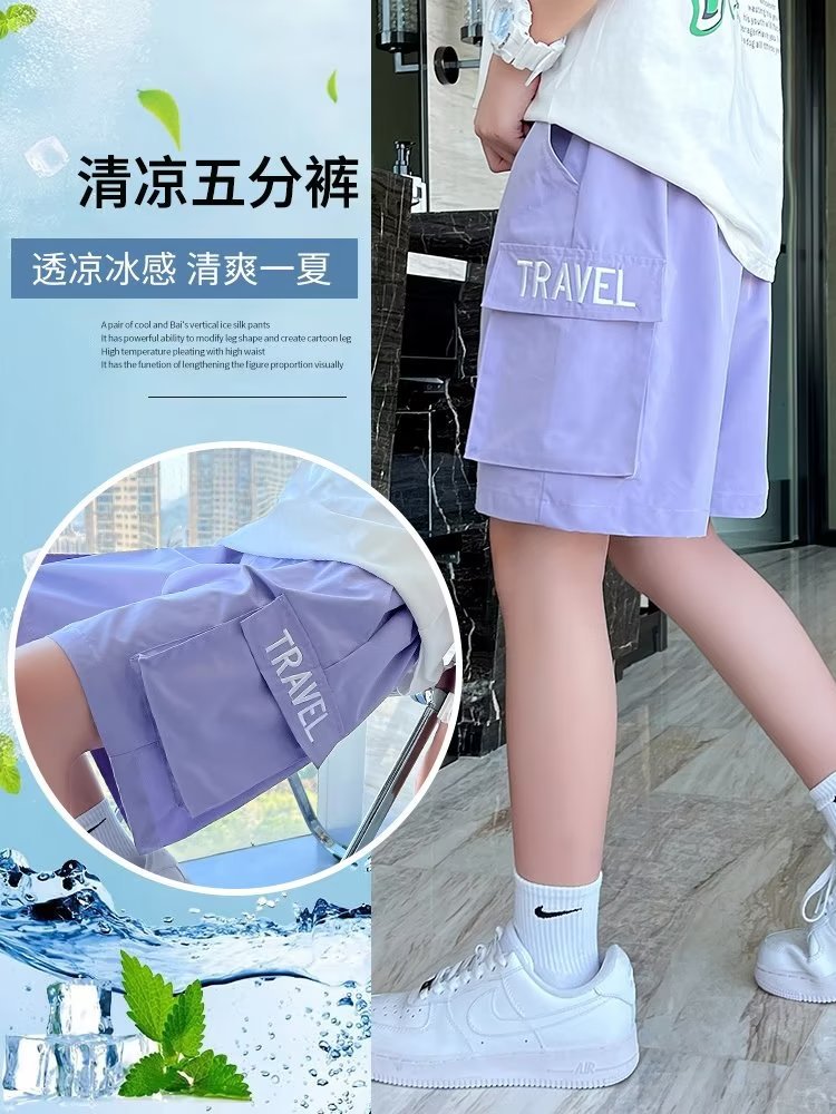 童装女童短裤夏季新款儿童冰丝五分裤休闲工装裤薄款夏装外贸