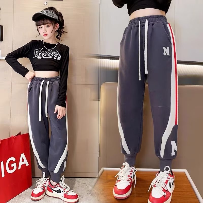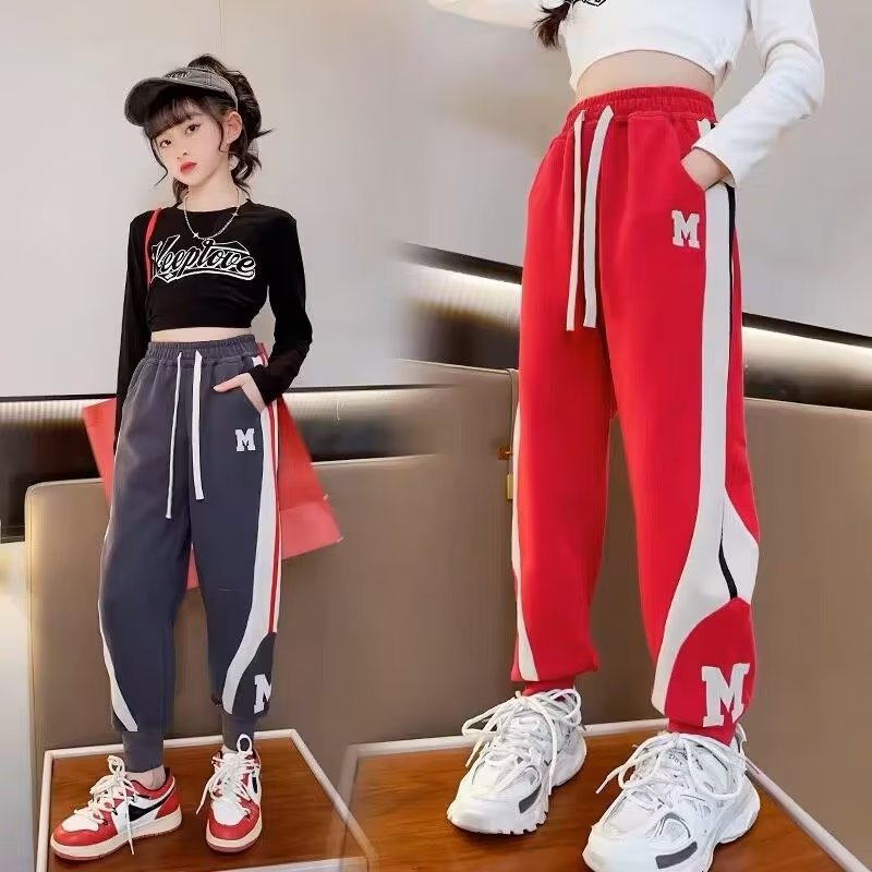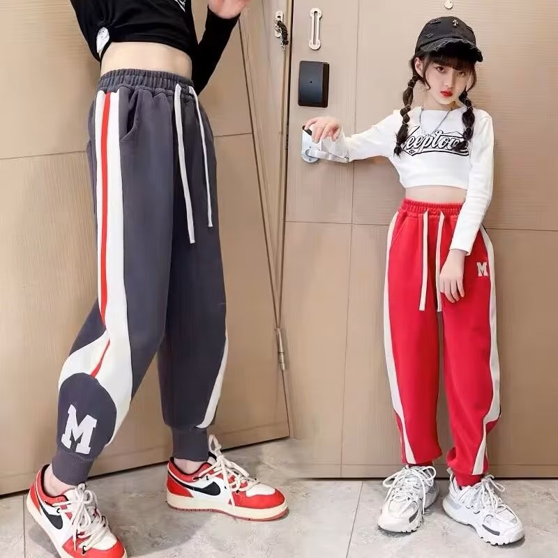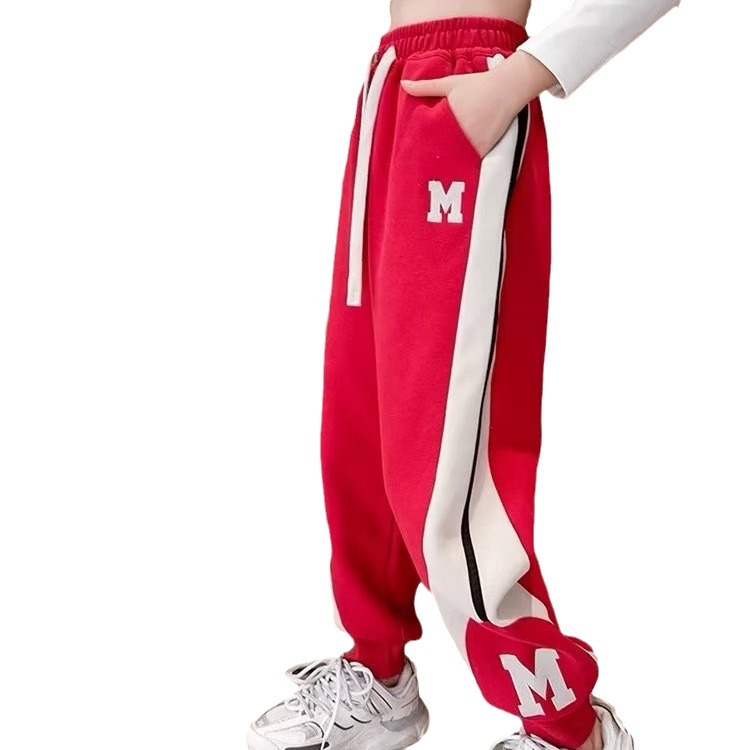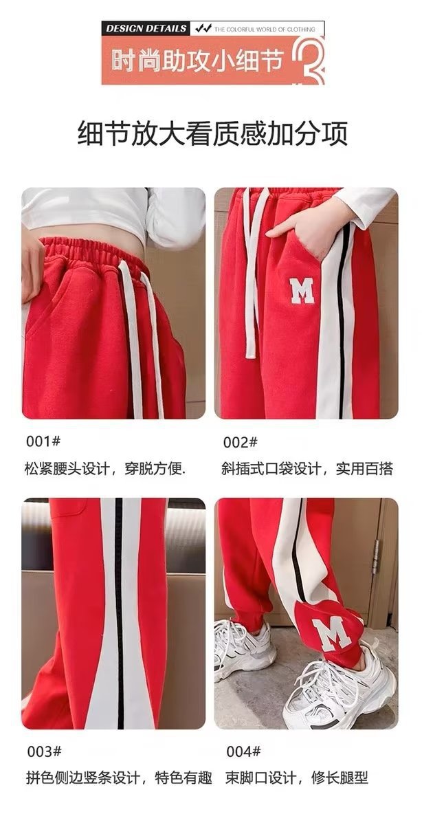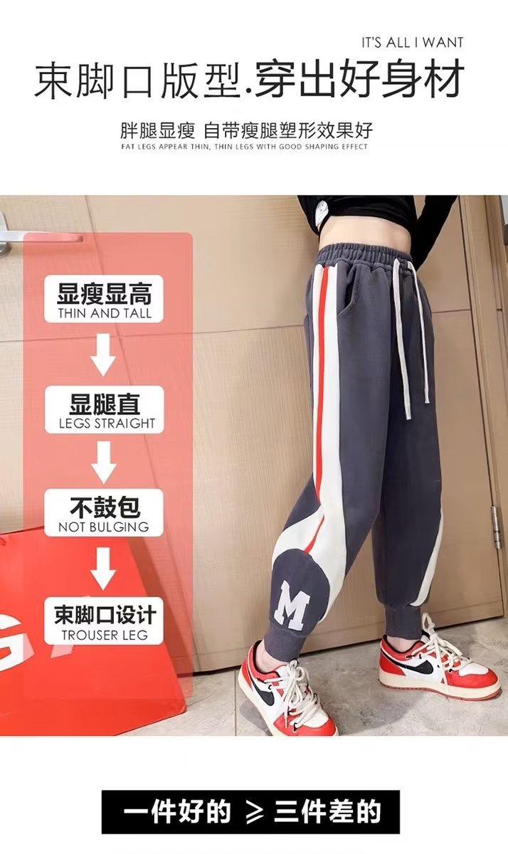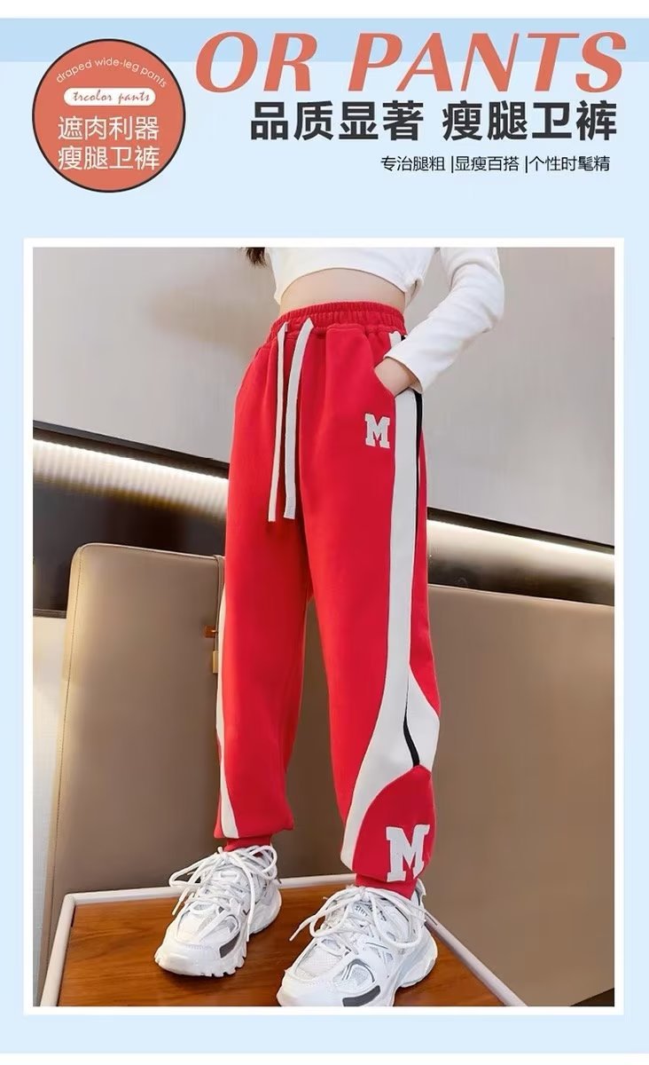 男女童运动裤中大童洋气卫裤宽松拼接束脚裤儿童休闲百搭裤子跨境