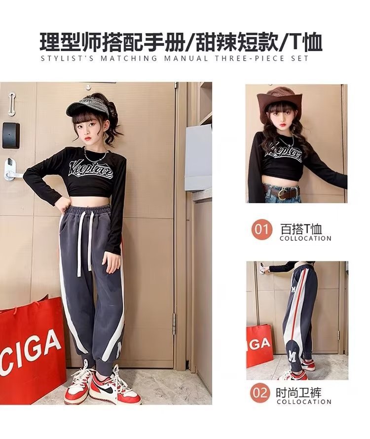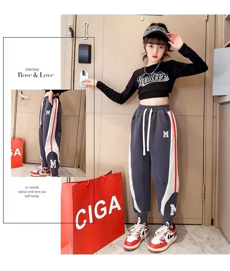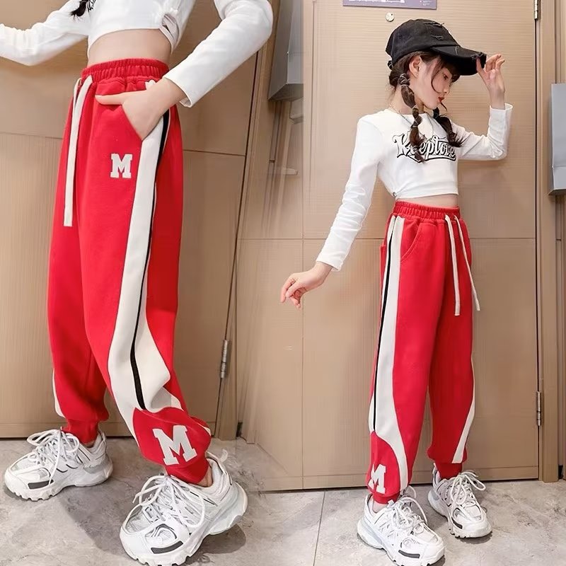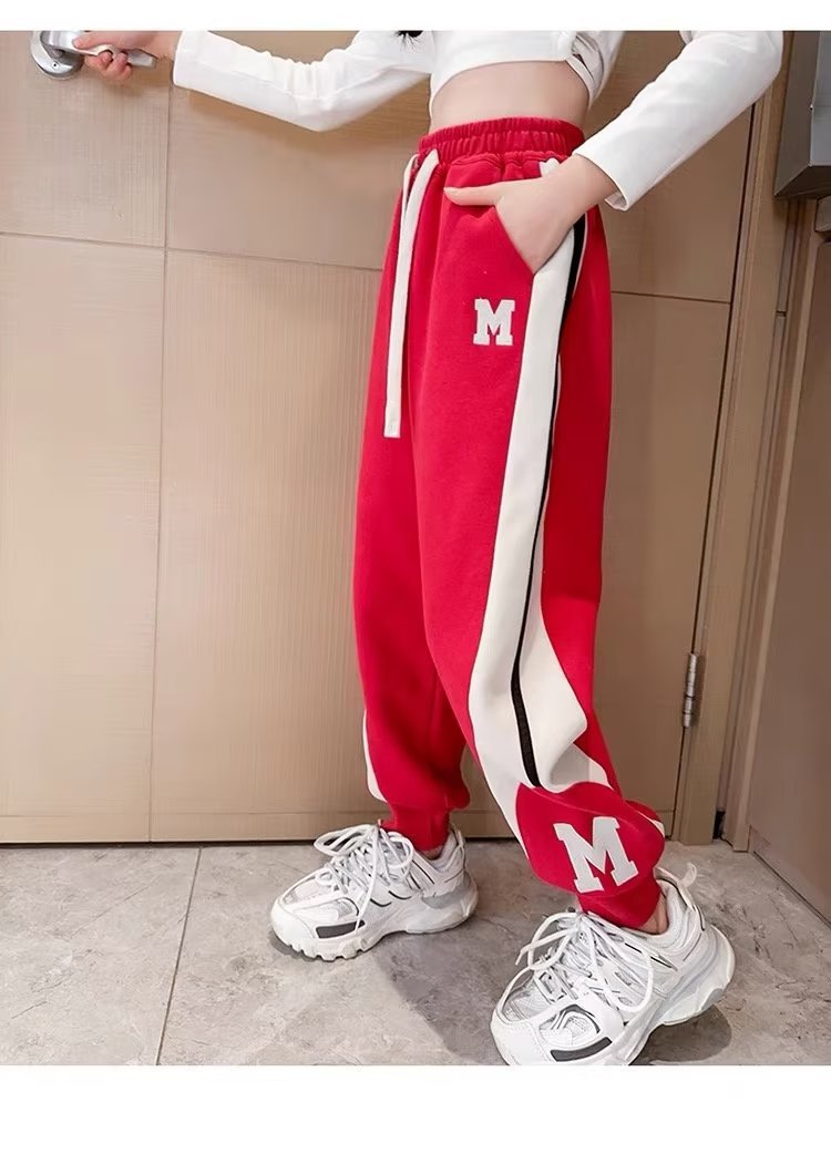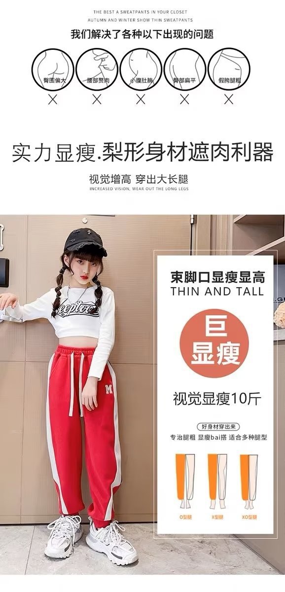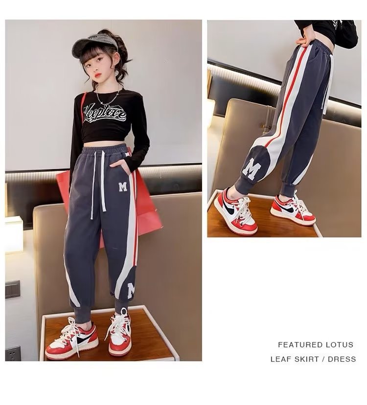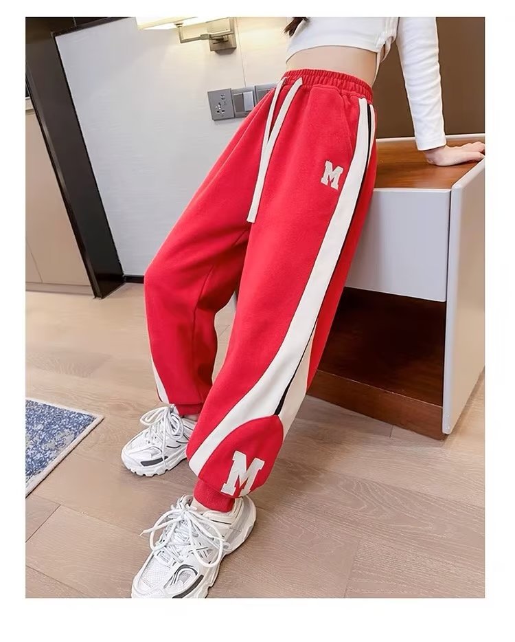 男女童运动裤中大童洋气卫裤宽松拼接束脚裤儿童休闲百搭裤子跨境