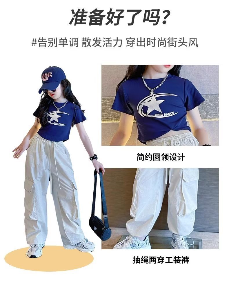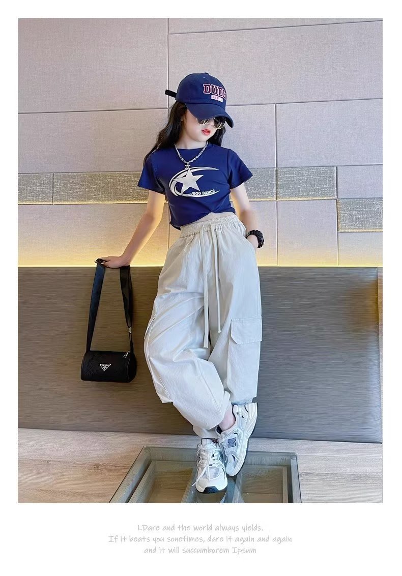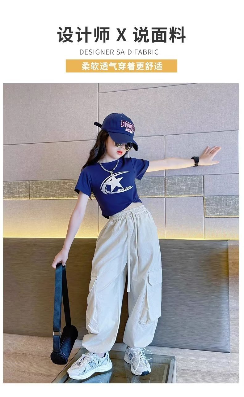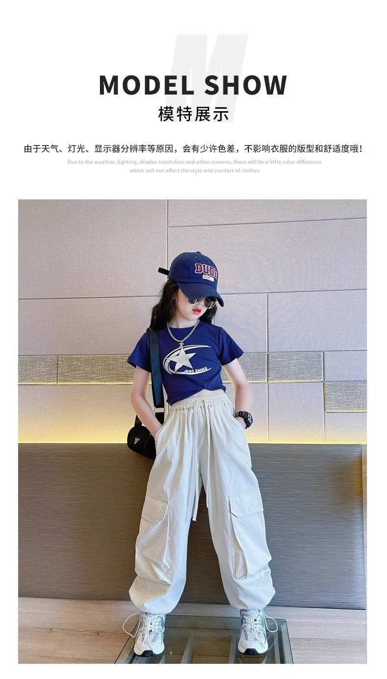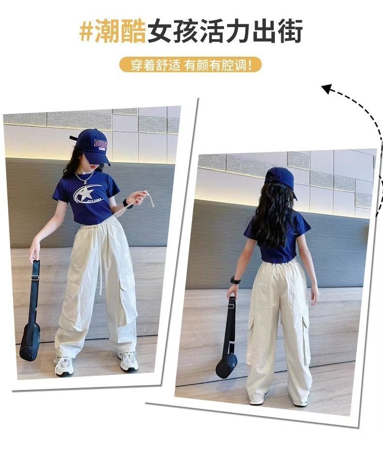 女童纯棉裤子薄款新款春季直筒工装裤儿童防蚊裤女大童阔腿裤