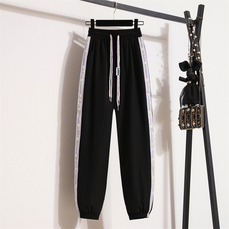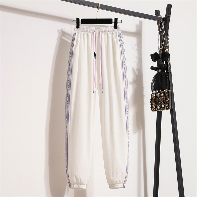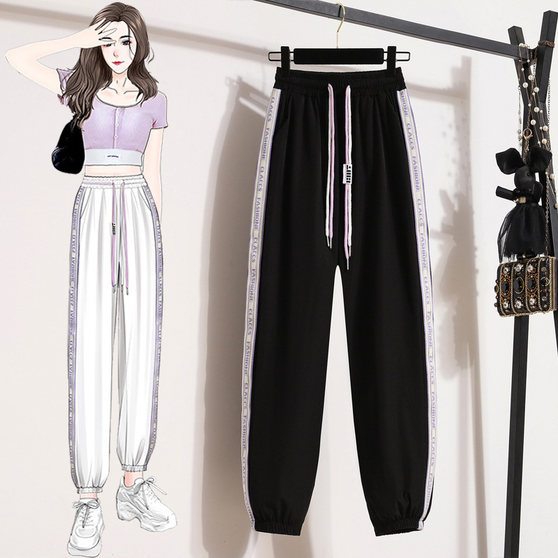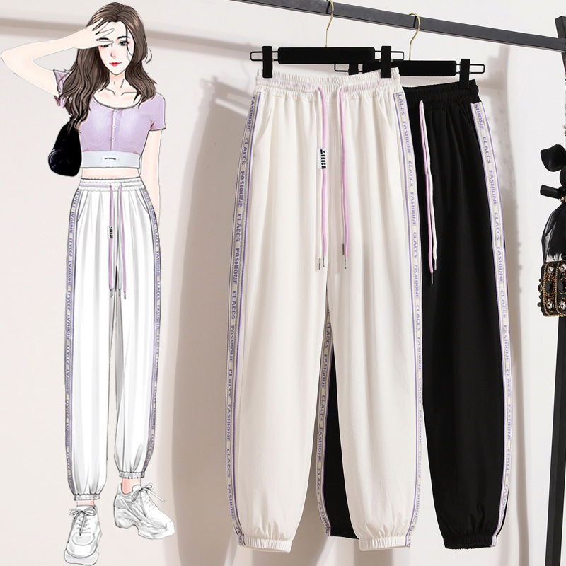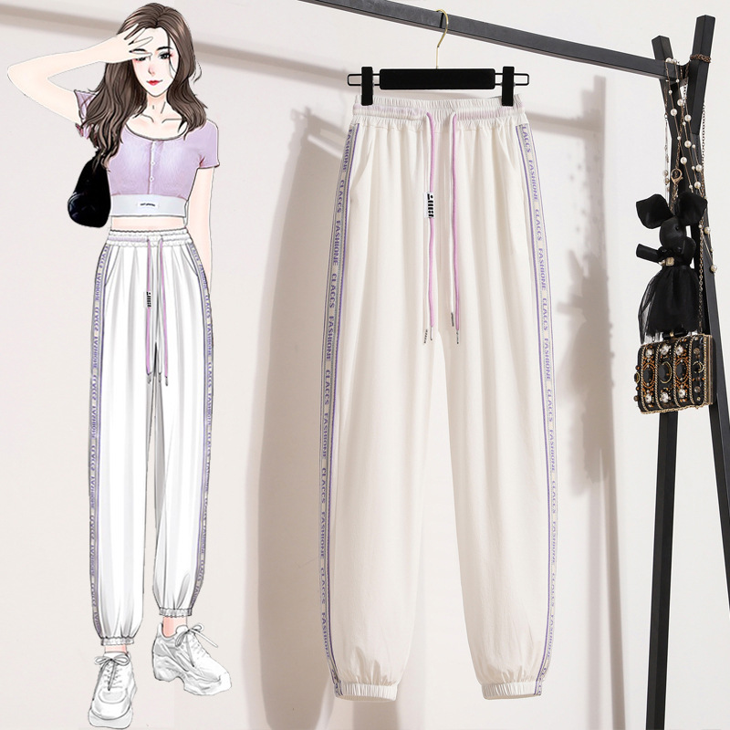 夏季女冰丝速干哈伦裤束脚薄款宽干小个子九分裤松紧腰运动裤