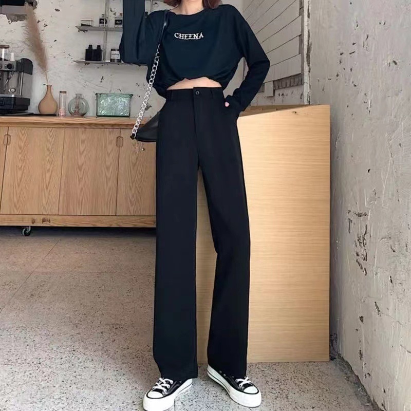阔腿裤女春秋高腰垂感拖地黑色显瘦百搭直筒休闲西装裤子夏季薄款