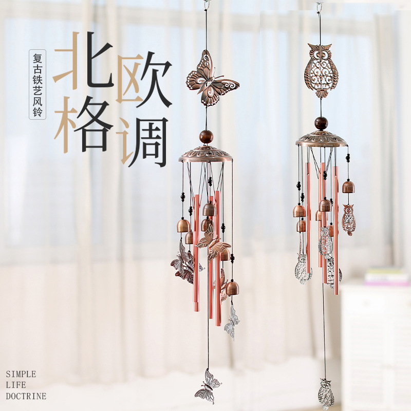 复古金属蝴蝶龟马铁艺风铃家居庭院铜色户外装挂饰