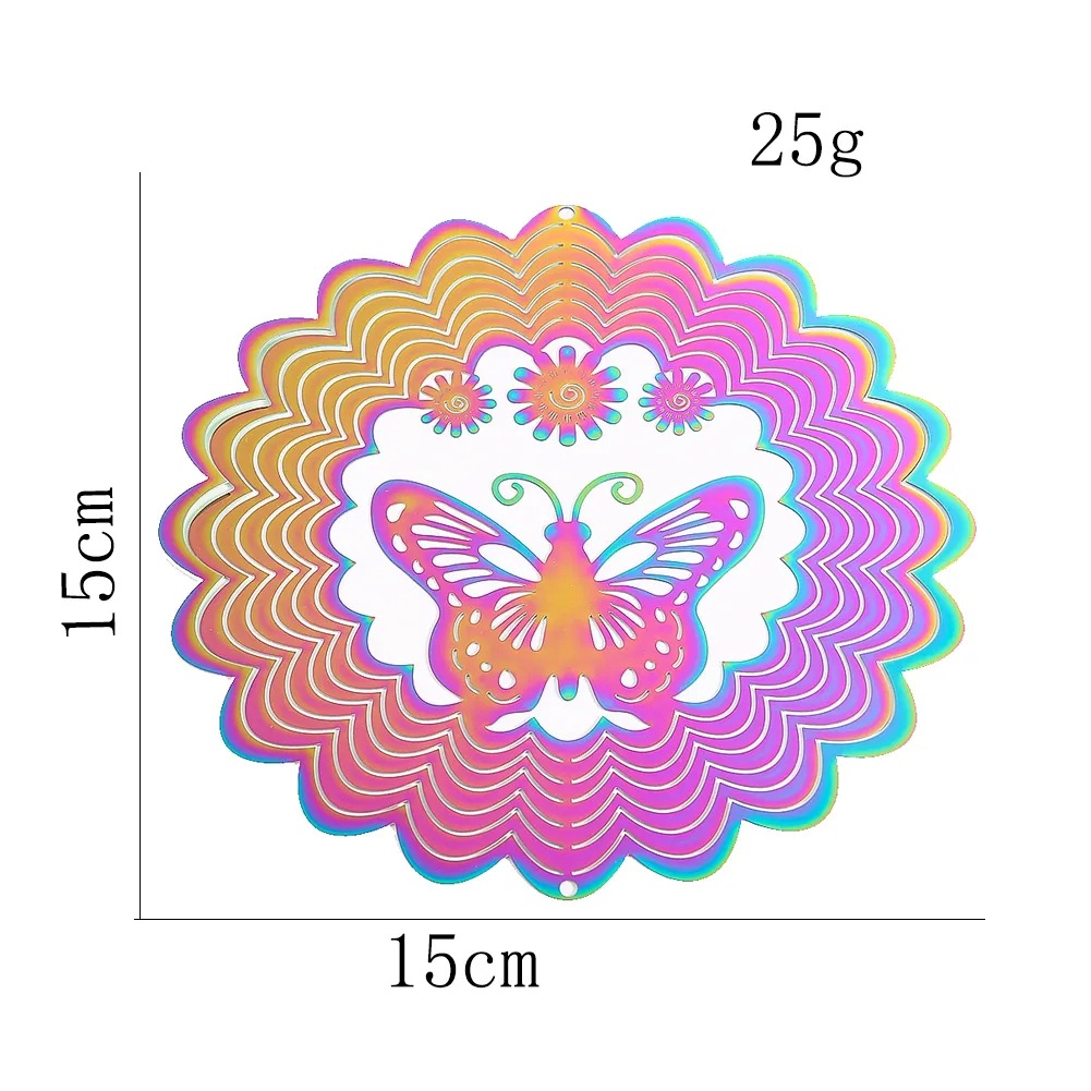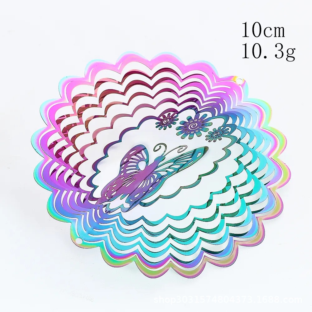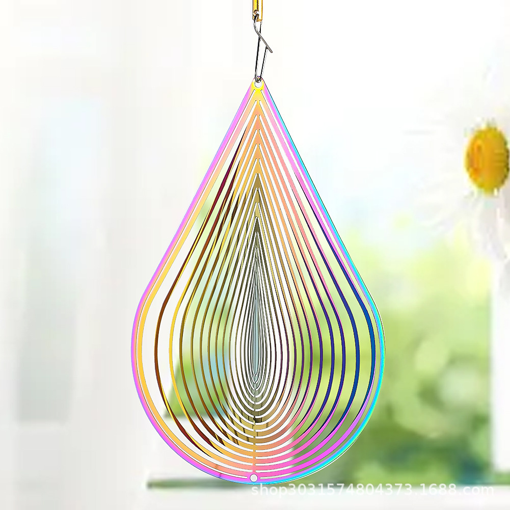 北欧渐变色3D旋转风铃不锈钢流动视觉效果户外花园庭院悬挂装饰品