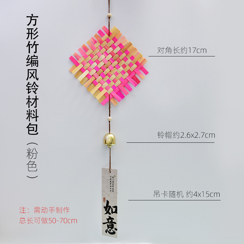方形 竹编风铃-粉色