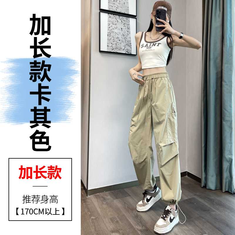 军绿色美式速干工装裤女夏季薄款束脚裤子高腰显瘦休闲抽绳阔腿裤