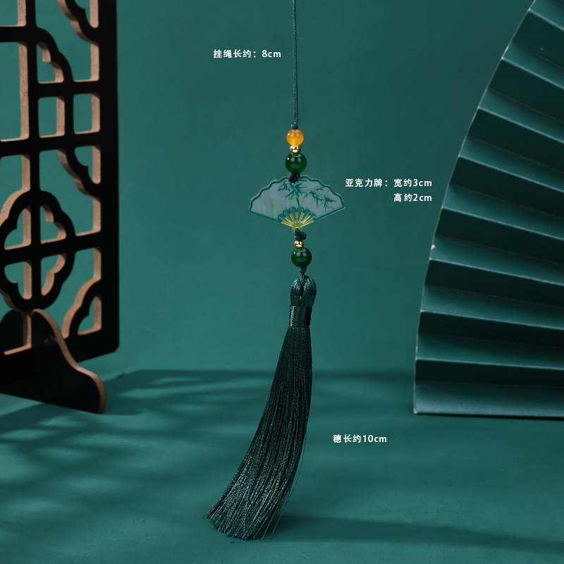 绿竹扇子 /墨绿流苏