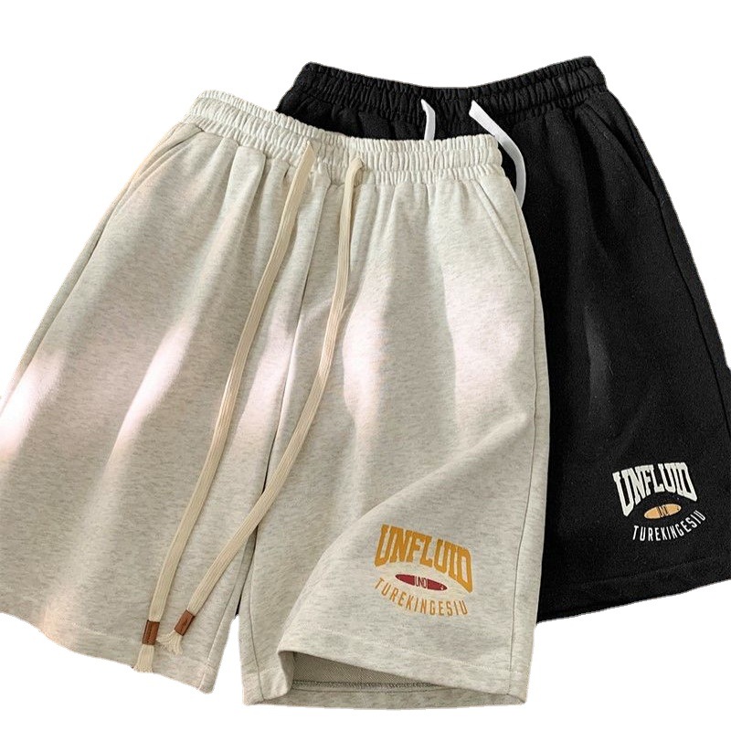 夏季五分短裤女运动薄款宽松大码新款印花休闲情侣直筒中裤男外穿
