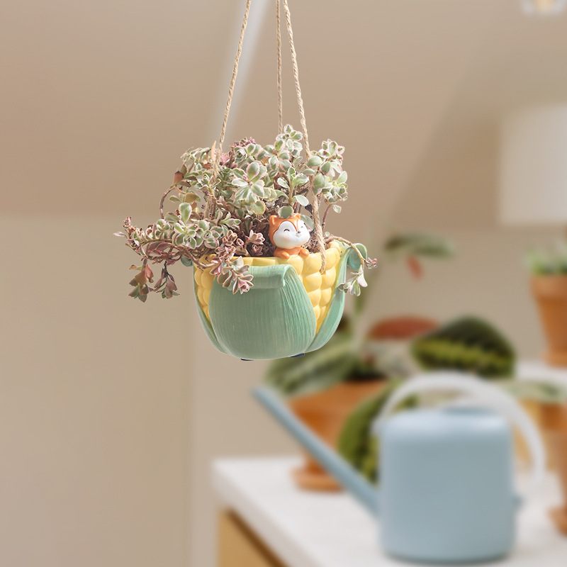乡村田园树脂小吊篮多肉盆栽花器创意景观园艺花盆挂件
