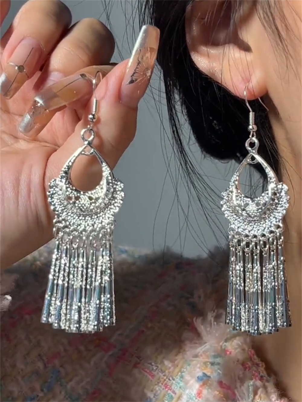 国风复古民族风流苏耳环女气质苗族百搭长款小众设计耳饰