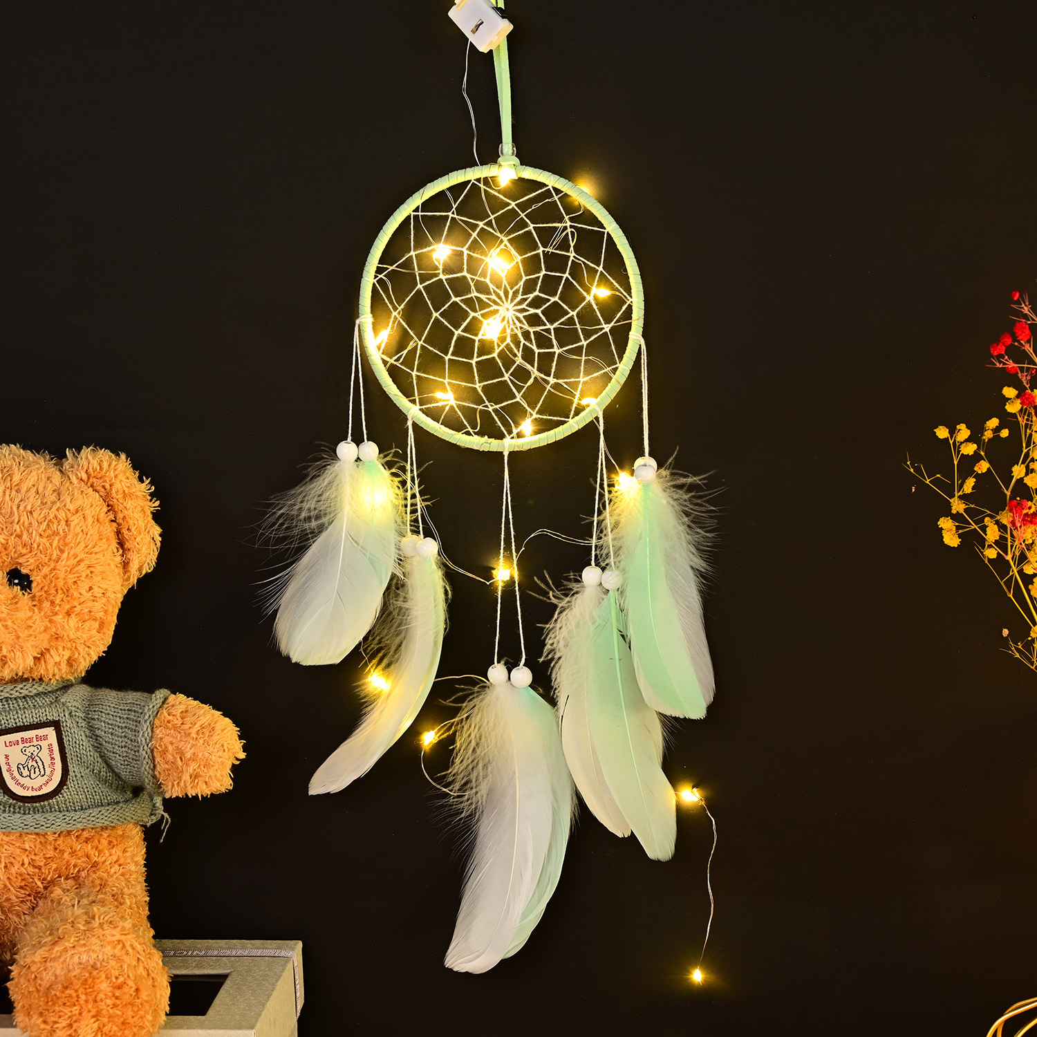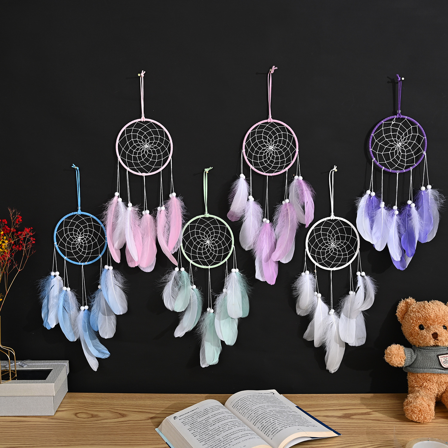 捕梦网儿童房家居装饰气氛布置用品手工编织羽毛风铃挂件