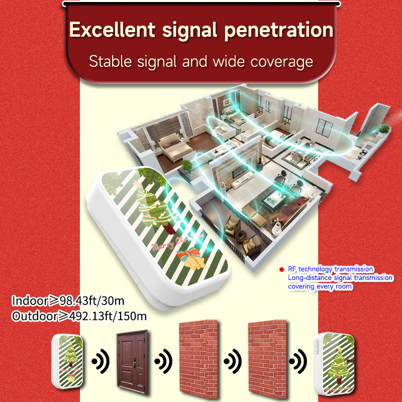 防水自发电圣诞门铃家用433免电池无线门铃远距离穿墙老人呼叫器