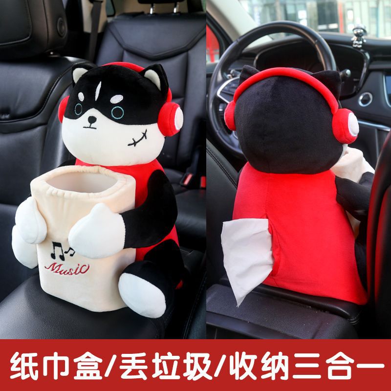 车载纸巾盒垃圾桶二合一创意社会狗车内装饰可爱汽车扶手箱抽纸盒