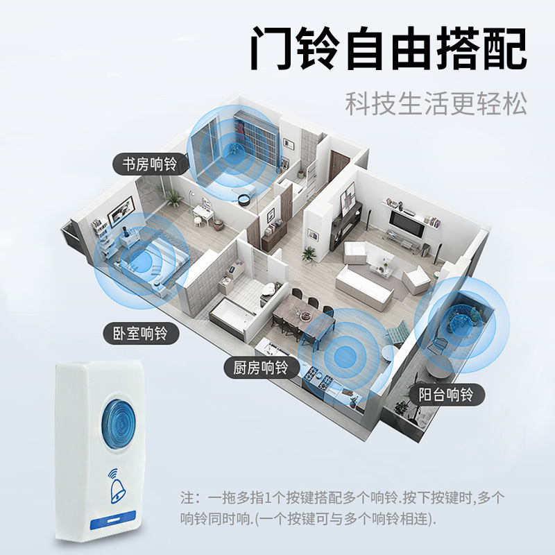 无线门铃家用一拖一遥控智能门铃交流