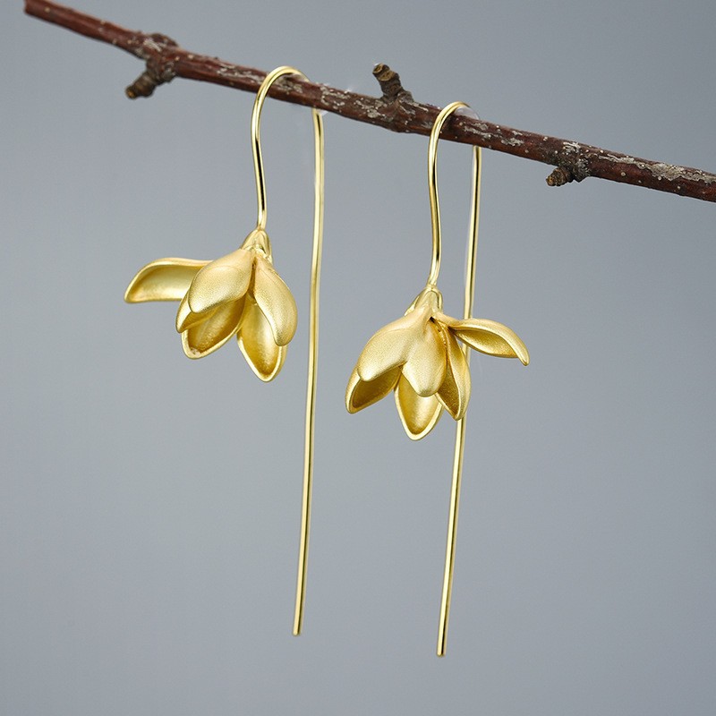 玉兰花开镀金镀银文艺清新长耳环耳钉耳线女复古国风百搭饰品礼物