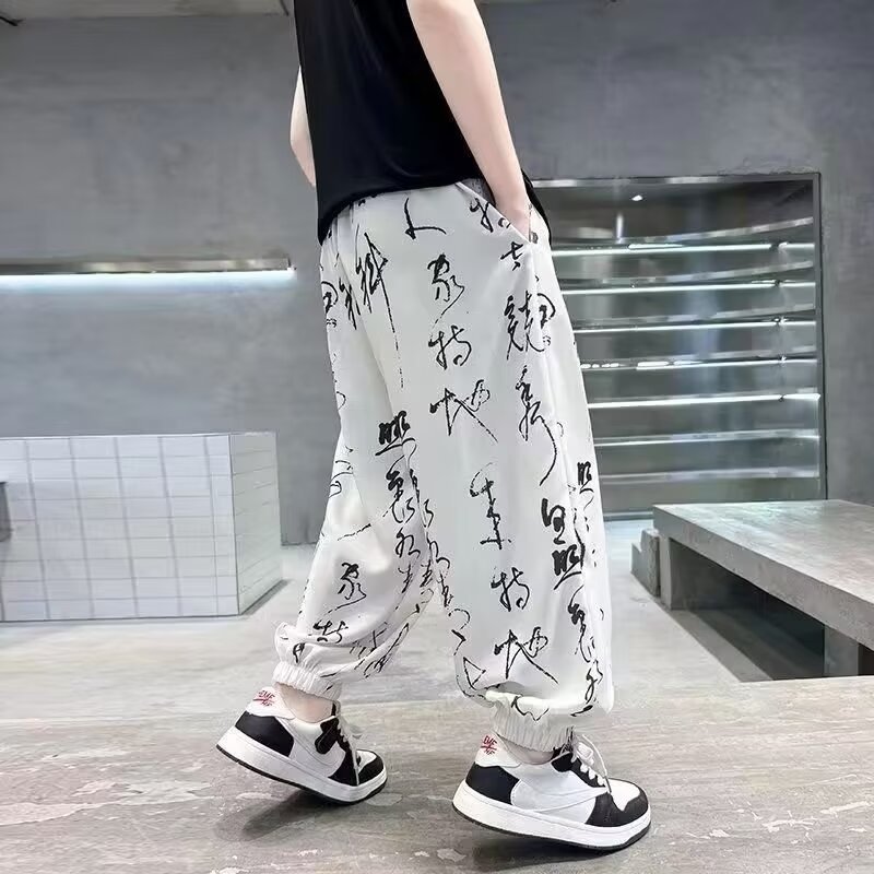 国风男童防蚊裤夏季薄款裤子儿童夏款冰丝速干长裤大童夏装灯笼裤