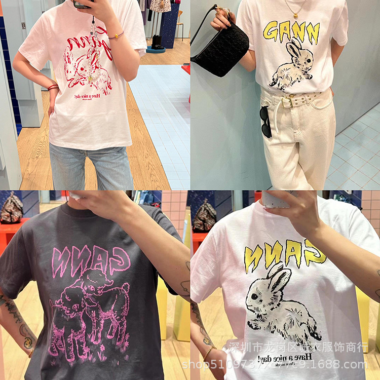 24春夏小动物系列宽松卡通北欧风套头T恤