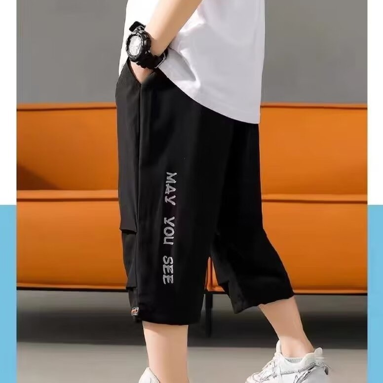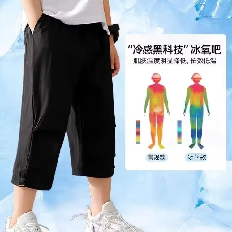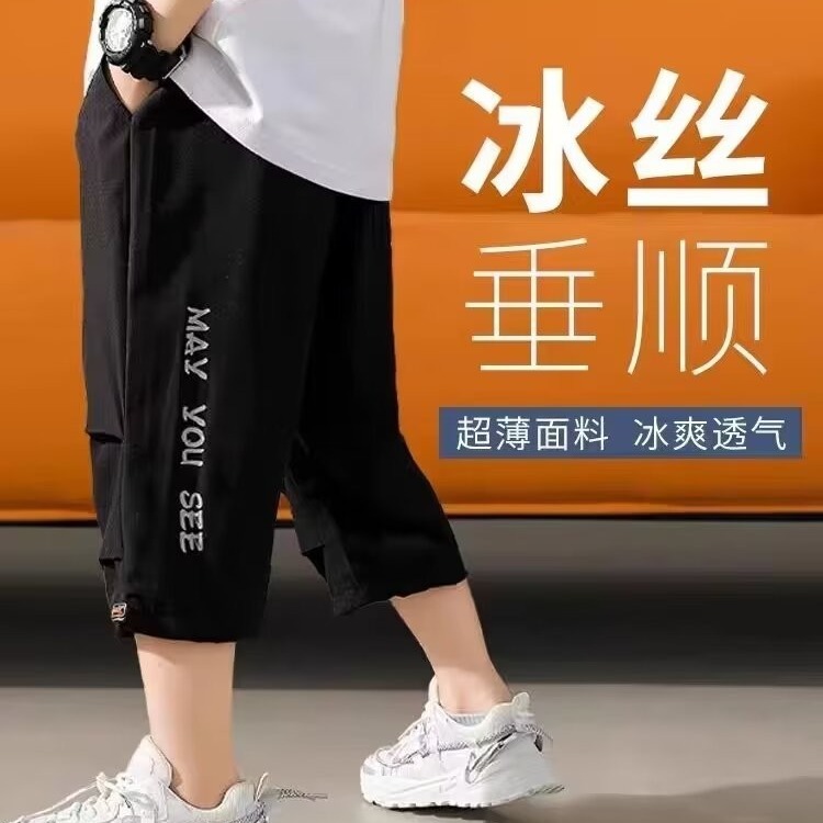 男童短裤儿童夏季裤子冰丝薄款速干七分裤中大童男孩宽松运动中裤