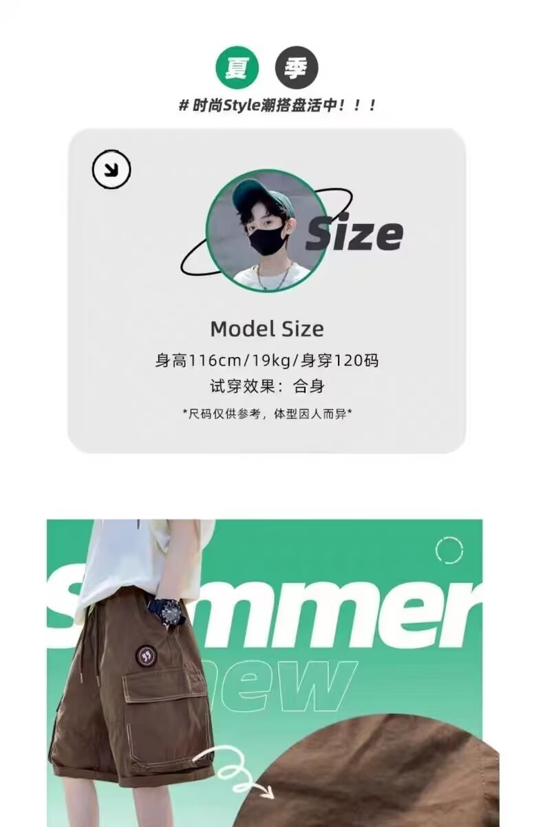 男童夏季工装短裤新款潮帅气时髦中大童休闲五分中裤宽松薄款