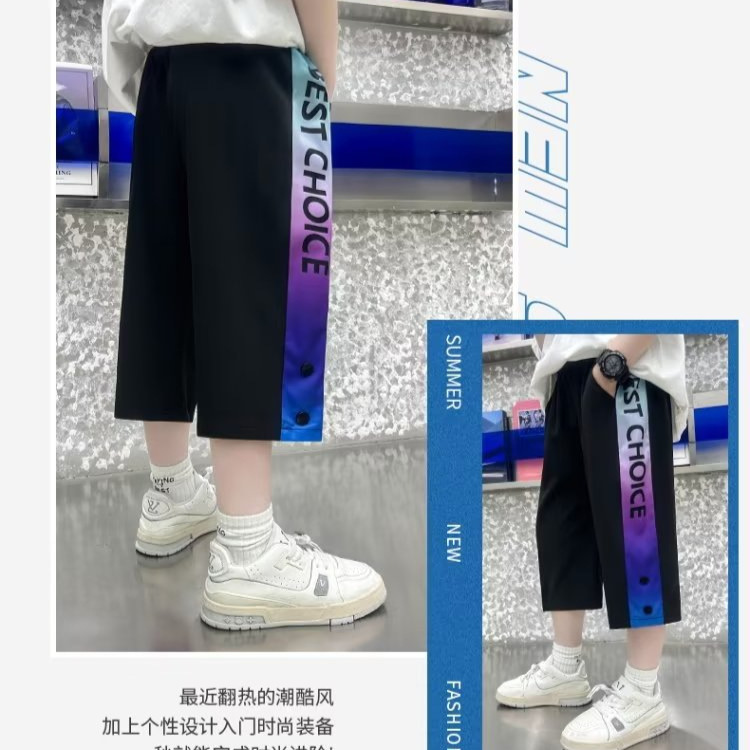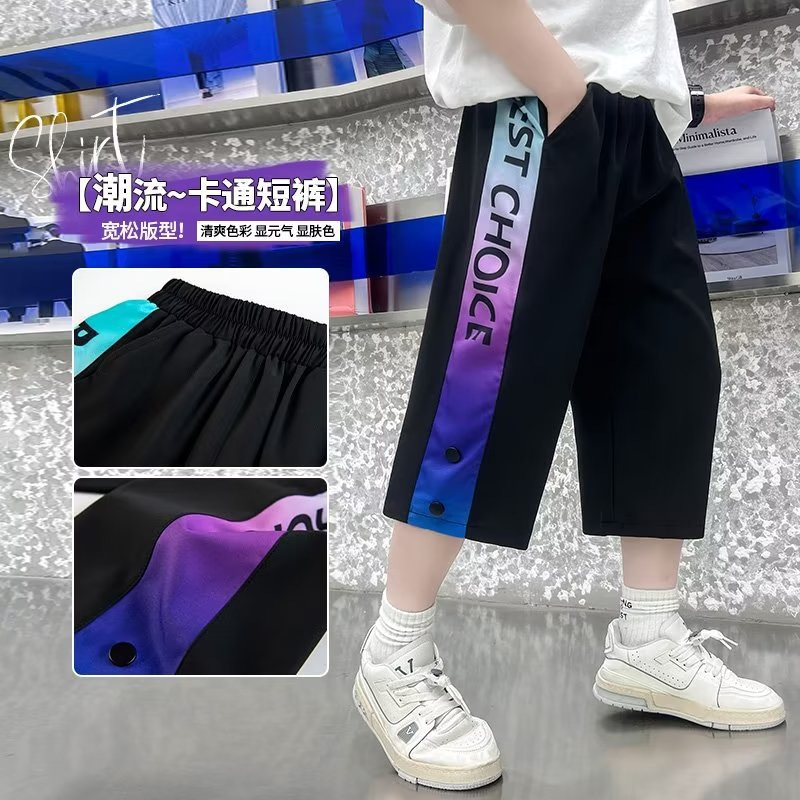 男童七分裤夏季薄款儿童冰丝速干运动短裤男孩大童裤子八分夏装潮