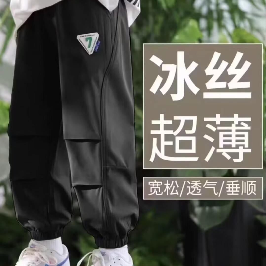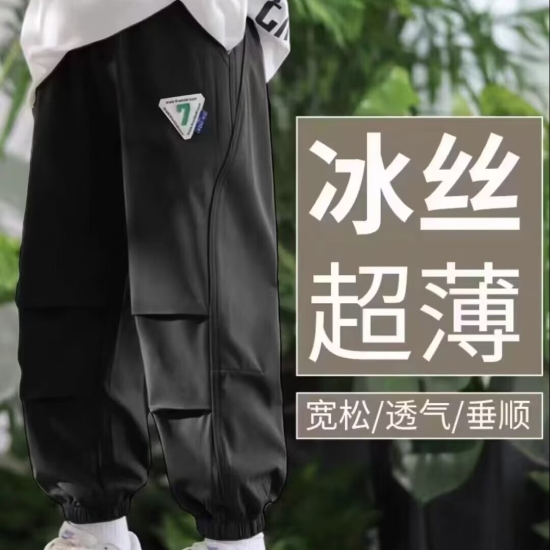 男童裤子夏季薄款儿童冰丝速干防蚊裤中大童宽松工装裤运动裤夏装