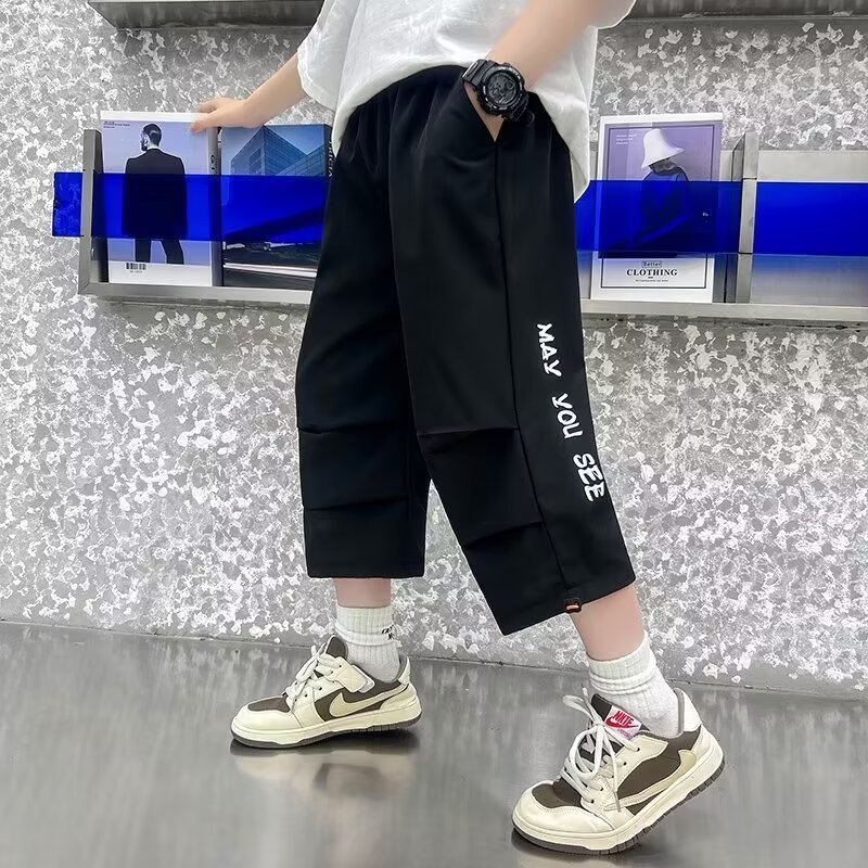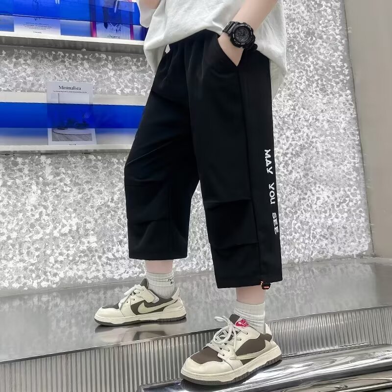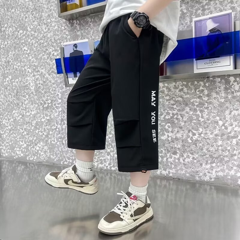 男童裤子宽松七分裤夏季男孩休闲裤薄款外穿短裤中大童冰丝速干裤