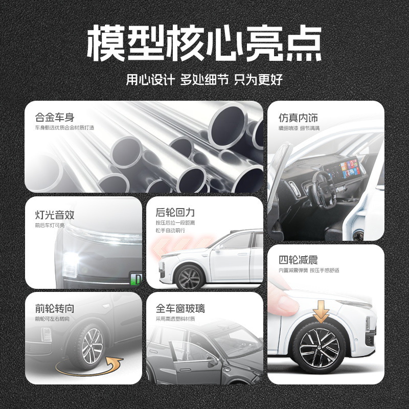 嘉业合金车模1:32理想L9越野车带声光回力玩具车音效模型摆件