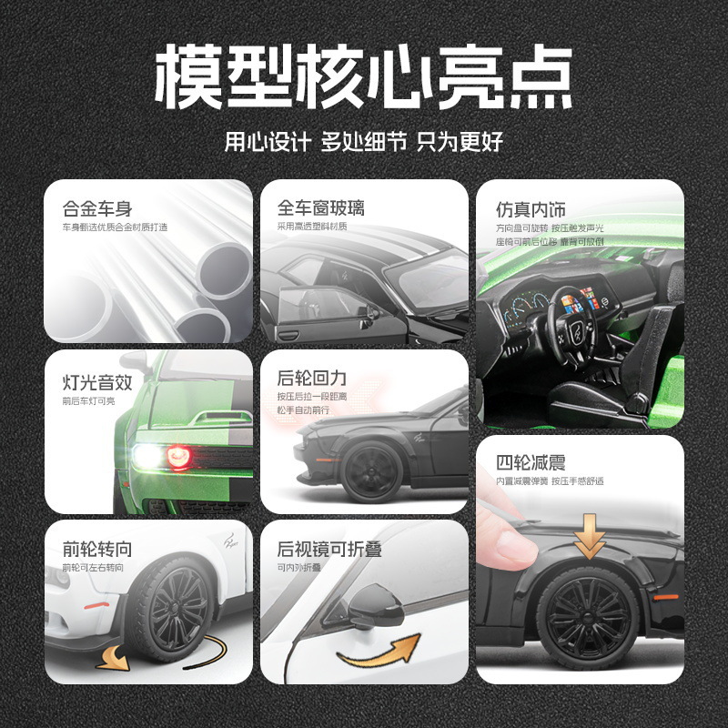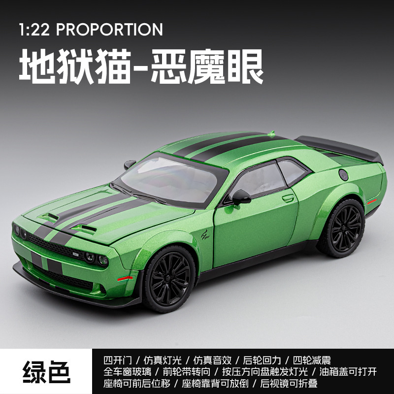 嘉业合金车模1:22地狱猫跑车声光回力玩具车音效模型摆件