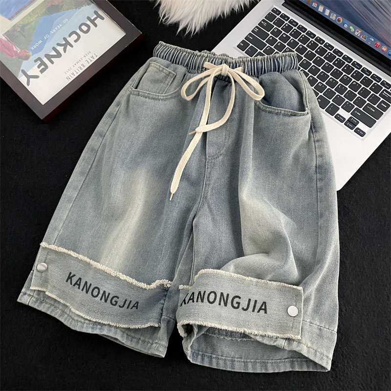 黄泥牛仔短裤男潮牌痞帅美式复古水洗做旧工装风宽松休闲五分中裤